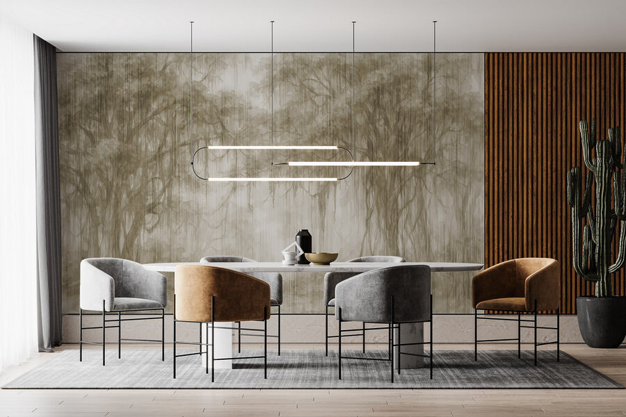 Transforme qualquer espaço numa fuga serena com este mural de parede encantador que apresenta um grupo de árvores envoltas num suave nevoeiro. É como entrar numa floresta tranquila, onde os sussurros suaves da natureza tocam ao fundo. Imagine-se a beber chá ou a folhear um livro enquanto estas belas silhuetas dão um toque de calma às suas paredes. As tonalidades subtis criam um ambiente convidativo, perfeito para relaxar ou para conversas profundas. Quer seja numa sala de estar acolhedora ou num escritório tranquilo, este mural convida ao calor e à quantidade certa de mistério. Abrace a beleza da natureza mesmo em casa!