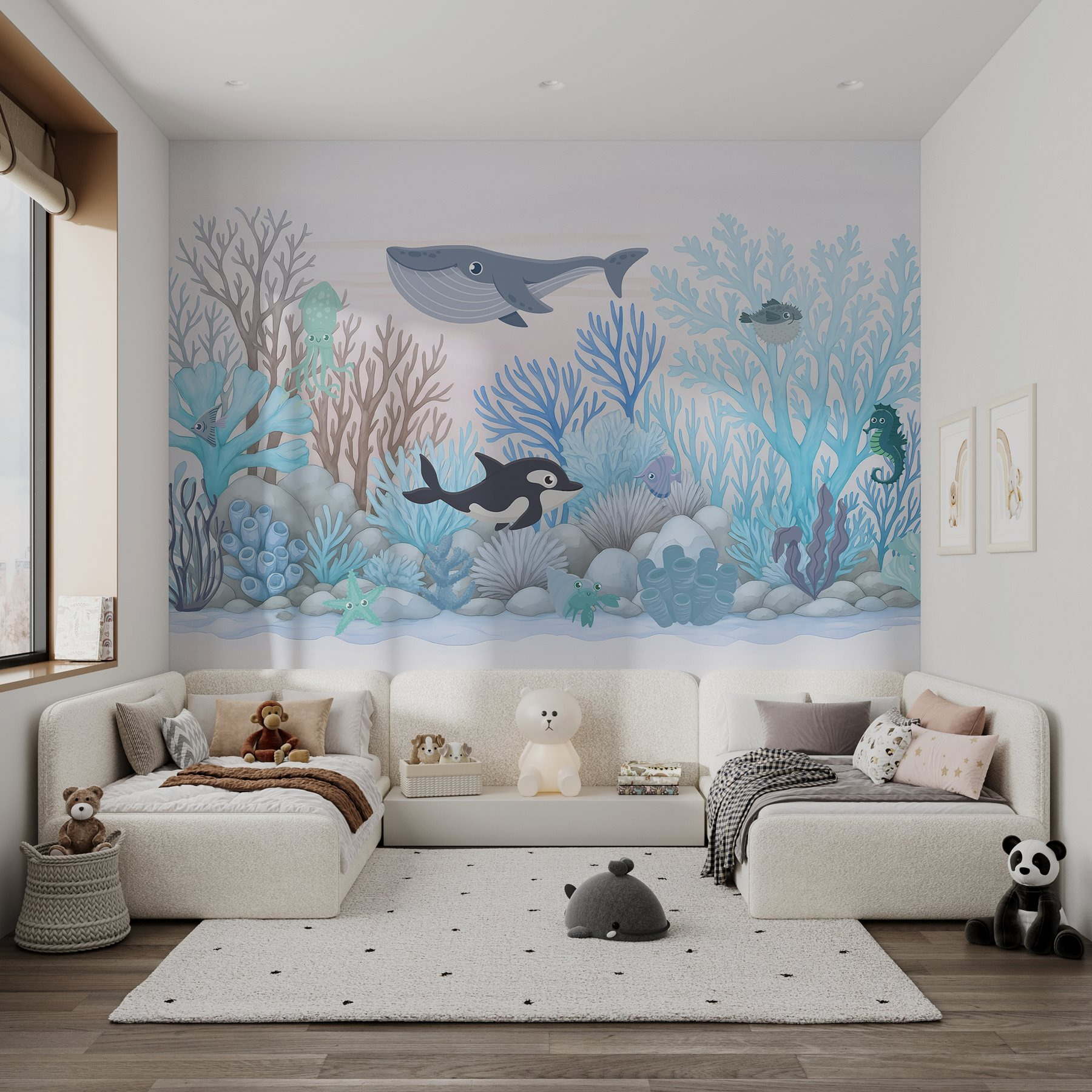 Mergulhe numa onda de diversão com este mural de parede que apresenta uma aventura subaquática extravagante! Imagine criaturas marinhas simpáticas a brincar entre corais vibrantes, criando uma atmosfera divertida perfeita para quartos de crianças ou áreas de lazer. Os azuis suaves e as formas suaves convidam a uma sensação de calma, fazendo com que qualquer espaço se sinta quase como um esconderijo secreto no oceano. Imagine os mais pequenos a apontar para a orca ou a rir-se com a lula tonta – cada olhar traz um sorriso. Este mural não é apenas uma decoração; é uma porta de entrada para um mundo cheio de imaginação. Transforme paredes vazias numa paisagem marítima animada que fará com que todos se sintam como se tivessem acabado de descobrir um tesouro debaixo das ondas!
