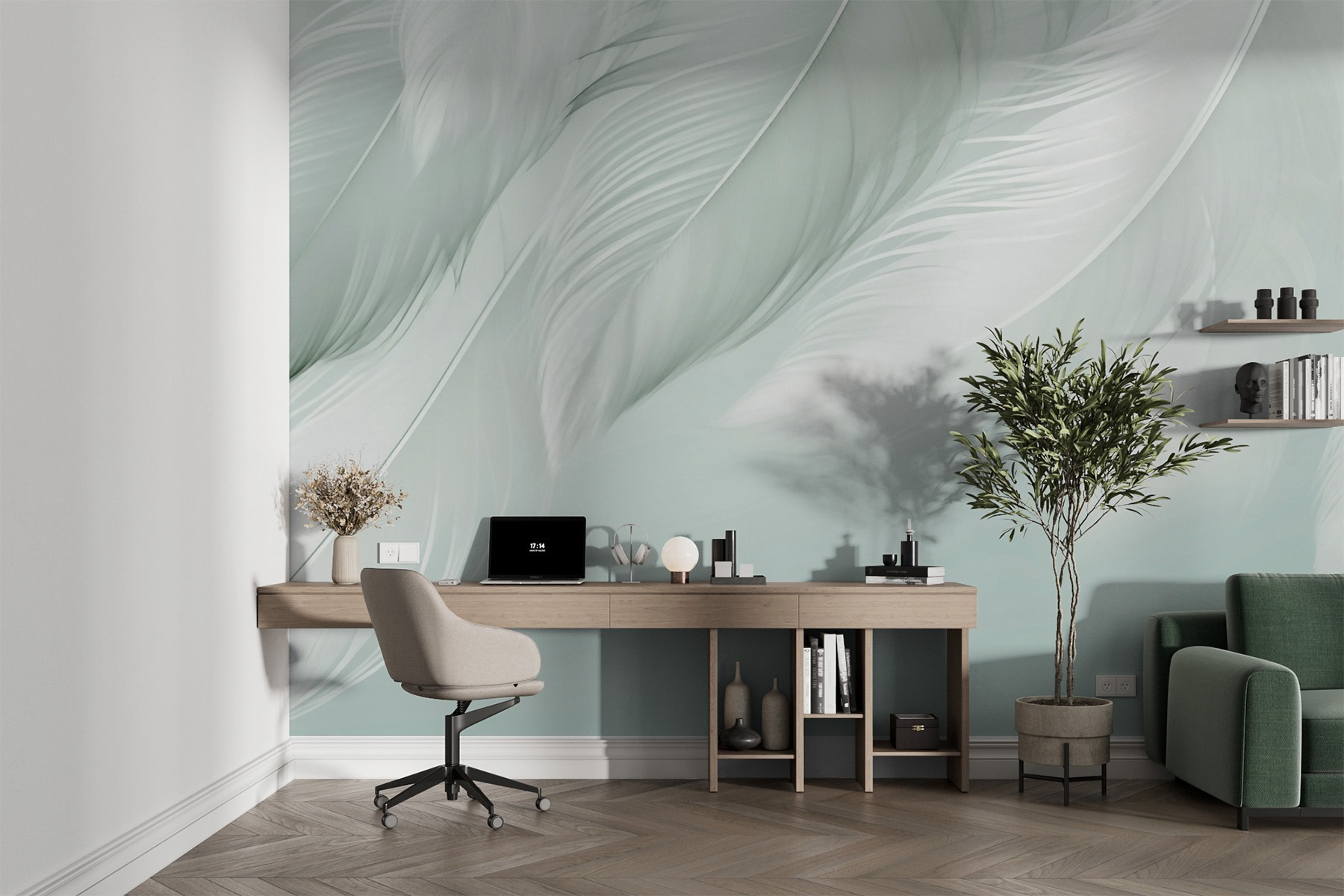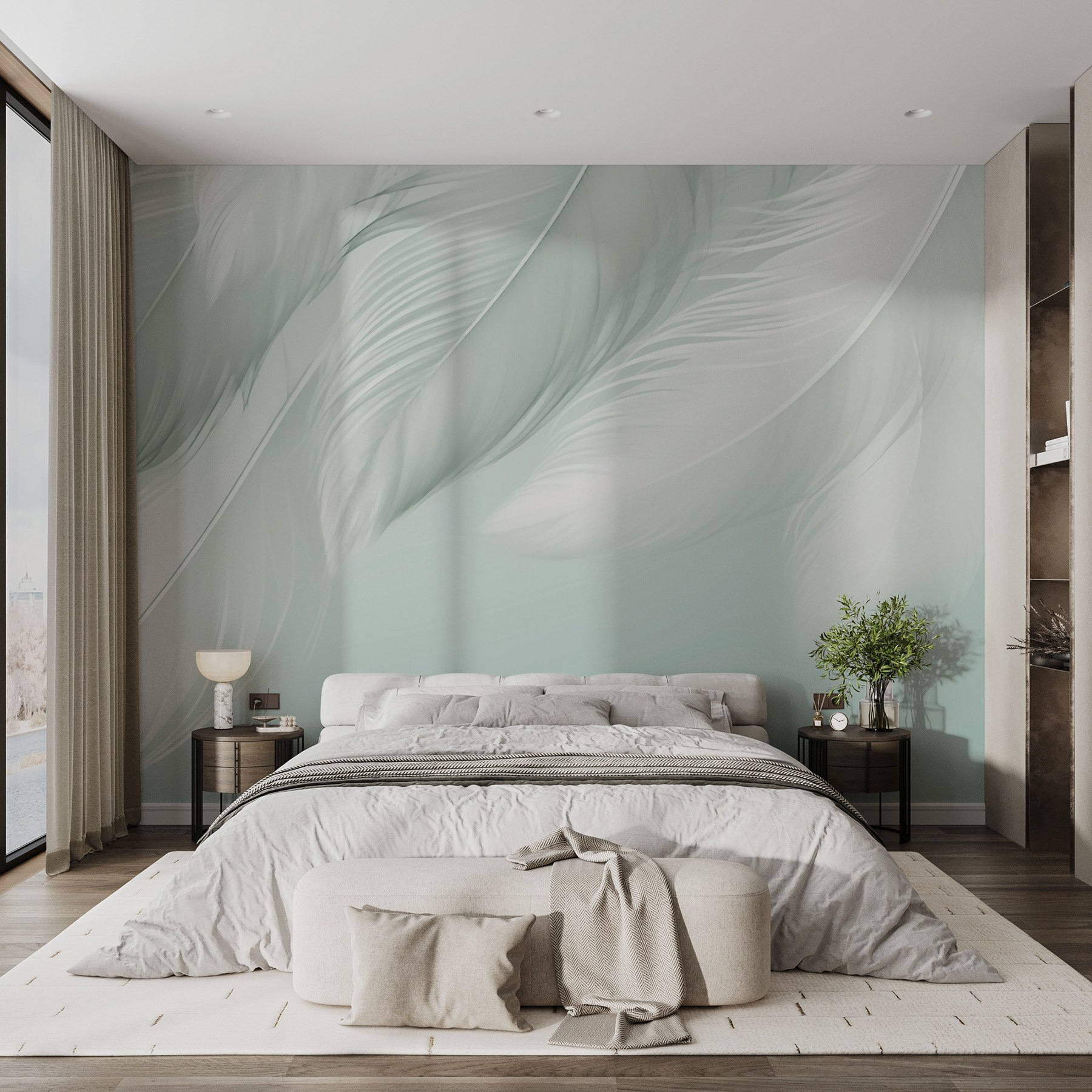 Transforme um espaço monótono num retiro sereno com este mural que apresenta penas brancas suaves a flutuar suavemente sobre um fundo claro. Imagine entrar numa divisão e sentir-se imediatamente mais leve, como uma lufada de ar fresco. O design delicado convida a uma sensação de calma, perfeita para um recanto de leitura acolhedor ou um quarto elegante. Combine-o com têxteis suaves e iluminação quente, e está pronto para aquelas manhãs preguiçosas de fim de semana ou conversas tardias com amigos. Pode até dar por si a sonhar acordado enquanto as penas balançam na sua mente, levando-o para lugares tranquilos. É tudo uma questão de criar uma atmosfera de sonho!