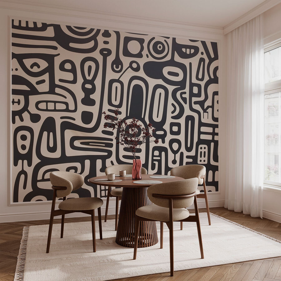 Mergulhe num mundo de criatividade peculiar com este mural de parede a preto e branco. É como se a sua parede decidisse vestir uma roupa elegante – formas arrojadas e linhas rítmicas dançam numa tela limpa, transformando qualquer espaço numa galeria pessoal. Imagine-se a beber um café, a distrair-se enquanto os seus olhos traçam as curvas e os ângulos divertidos. É um ponto de partida para uma conversa, que certamente suscitará debates sobre interpretações de arte ou talvez até risos. Perfeito para aquela parede em branco que clama por personalidade, este mural traz uma vibração moderna, ao mesmo tempo que é muito fixe sem se esforçar demasiado. É como o meio-termo entre o peculiar e o chique – exatamente o que todas as casas precisam para dar um pontapé no tédio.