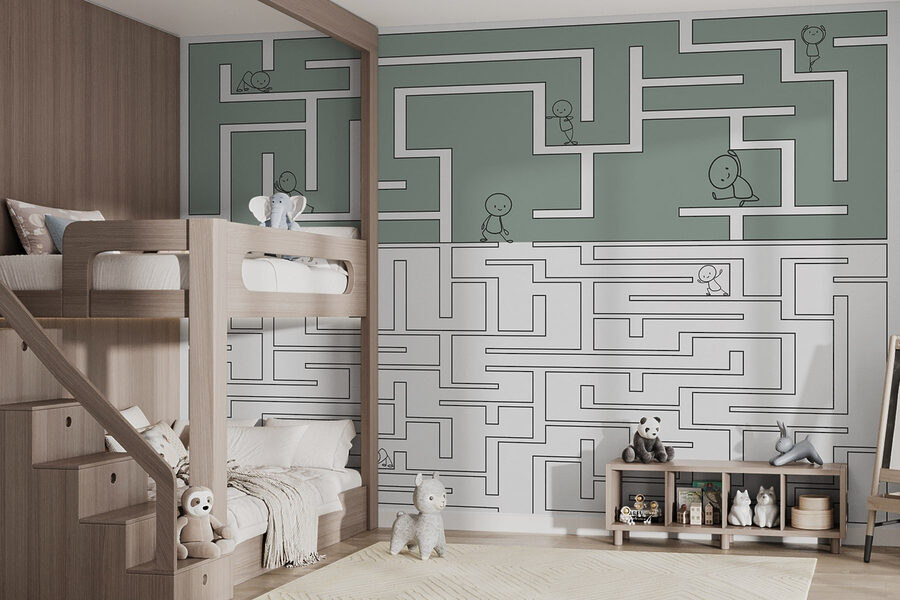 Transforme o espaço de uma criança numa aventura divertida com este mural de parede caprichoso com um jogo de labirinto e personagens de desenhos animados alegres. Imagine os mais pequenos a traçar ansiosamente os dedos ao longo dos caminhos enquanto fingem guiar o seu caminho através de todo o tipo de aventuras engraçadas. A paleta de cores suaves mantém as coisas calmas, enquanto o design dinâmico do labirinto desperta a curiosidade. Não é apenas uma decoração; é um pano de fundo para brincadeiras imaginativas e para contar histórias. Perfeito para quartos ou salas de jogos, este mural convida ao riso, à criatividade e a um pouco de competição amigável. Veja como as crianças se perdem na diversão!