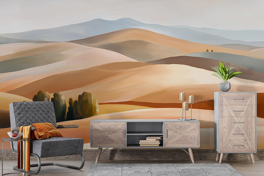 Transforme o seu espaço com o charme convidativo deste mural de parede, representando uma paisagem serena de colinas e árvores tranquilas. Imagine entrar num pôr do sol quente e dourado, onde as curvas suaves da natureza o envolvem como um cobertor acolhedor. É o cenário perfeito para aqueles fins-de-semana preguiçosos – café na mão, relaxar com um bom livro ou simplesmente sonhar acordado. Cada olhar pode transportá-lo para uma encosta tranquila, ajudando a dissipar o stress. Este mural não se limita a decorar uma parede; traz uma fatia da natureza para dentro de casa, provocando conversas e talvez até alguns suspiros felizes. Perfeito para salas de estar, quartos de dormir ou para aquele recanto acolhedor onde a inspiração bate à porta. Porque não deixar as suas paredes respirar um pouco de vida?
