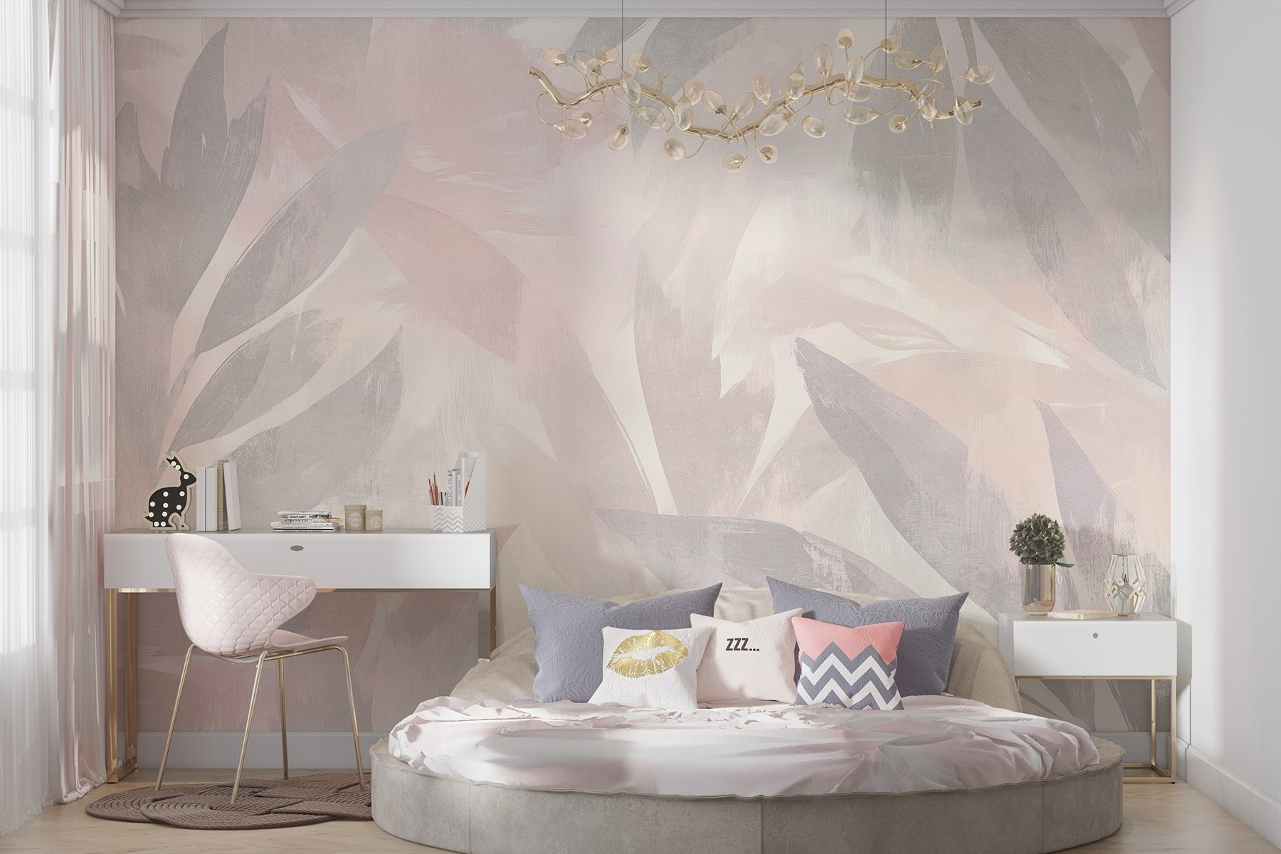 Transforme o seu espaço com este deslumbrante mural de parede que apresenta uma delicada dança de folhas brancas e cor-de-rosa contra um fundo suave. É como trazer uma pequena fatia da natureza para dentro de casa, sem a confusão de regar as plantas. Imagine entrar numa sala acolhedora onde os tons suaves o envolvem, fazendo com que tudo pareça mais relaxado e convidativo. Perfeita para um quarto de sonho ou para uma área de estar serena, fará com que se sinta como se estivesse a relaxar numa brisa suave. E quem diria que as folhas podiam ter um estilo tão chique? Enquadre os seus momentos com este mural, e veja como eleva cada dia, um lindo olhar de cada vez.