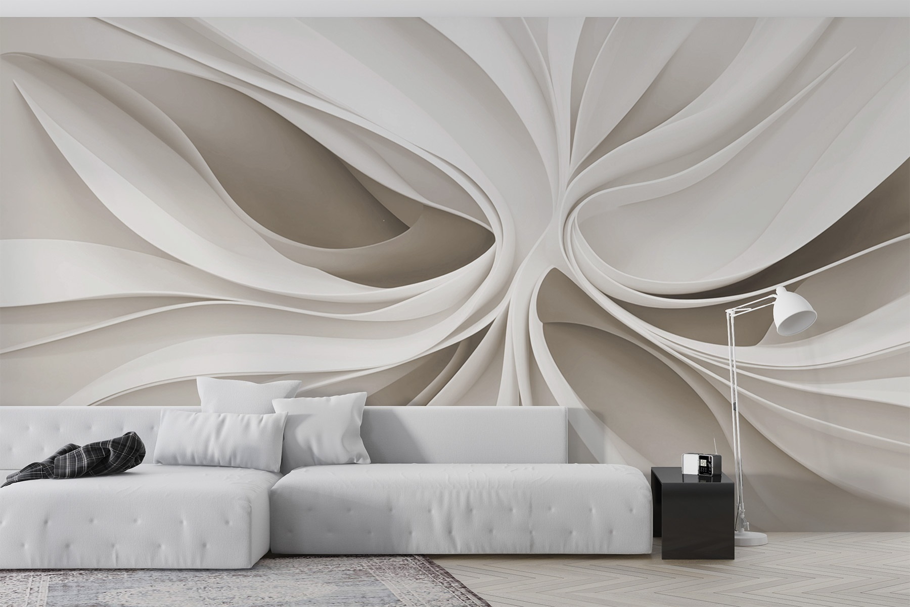 Transforme qualquer divisão com este mural de parede cativante, com um padrão branco em espiral que parece moderno e sereno. As curvas suaves e as linhas suaves criam uma sensação de movimento, como uma dança de luz e sombra. Imagine entrar no seu espaço e ser recebido por este pano de fundo calmante – é quase como ter uma obra de arte que dá vida à divisão.