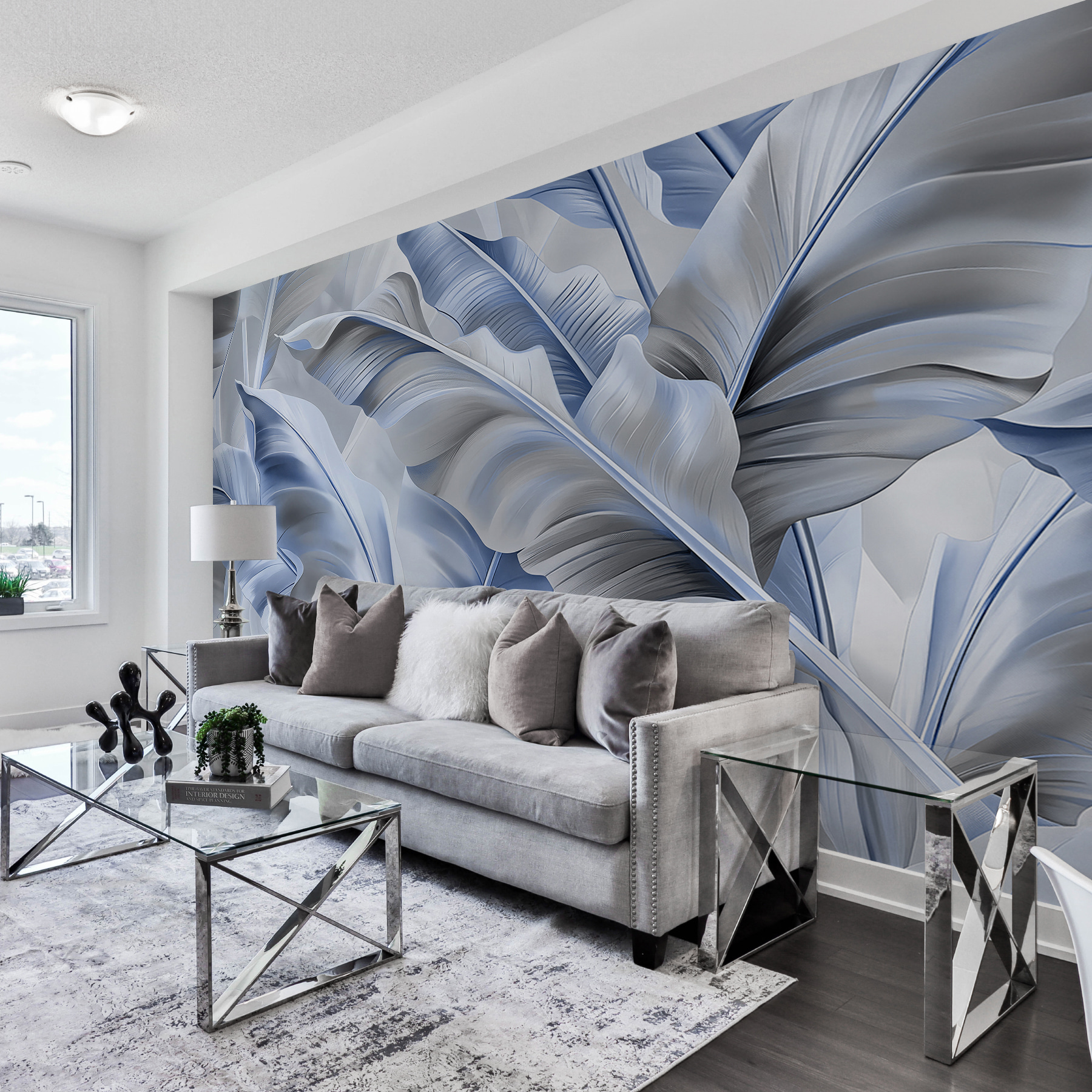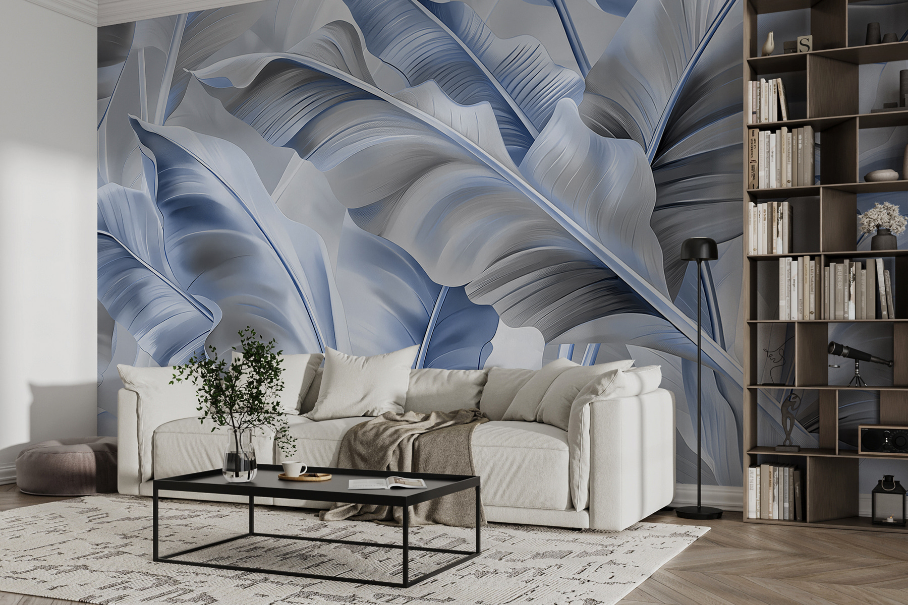 Transformar um espaço pode parecer uma mini-aventura, e este mural de parede de elegantes folhas azuis é o ideal. Imagine entrar numa sala onde a natureza se encontra com a arte, com uma folhagem suave e abstrata que o envolve num abraço reconfortante. Os tons frios de azul criam uma atmosfera calmante, perfeita para descontrair depois de um longo dia ou para definir o ambiente para uma reunião acolhedora. É como ter um jardim dentro de casa – sem o regador. Além disso, aquelas curvas suaves e formas fluidas? Praticamente sussurram relaxamento. Os convidados podem até pensar que é uma espécie de mago do design. Este mural não se limita a decorar; eleva o seu espaço a algo que parece fresco e convidativo. É definitivamente um início de conversa. Quem é que não quereria conversar sobre estas folhas deslumbrantes?