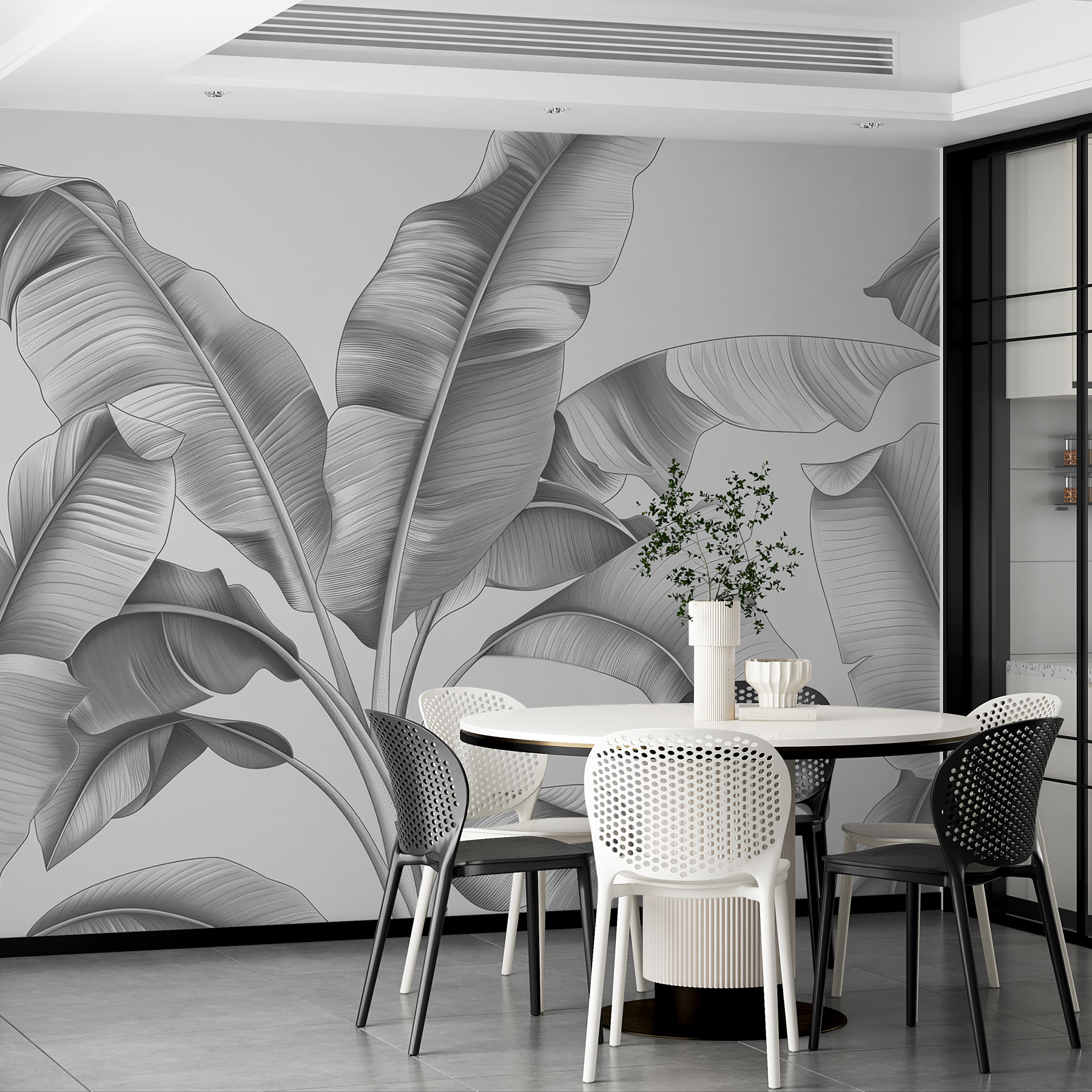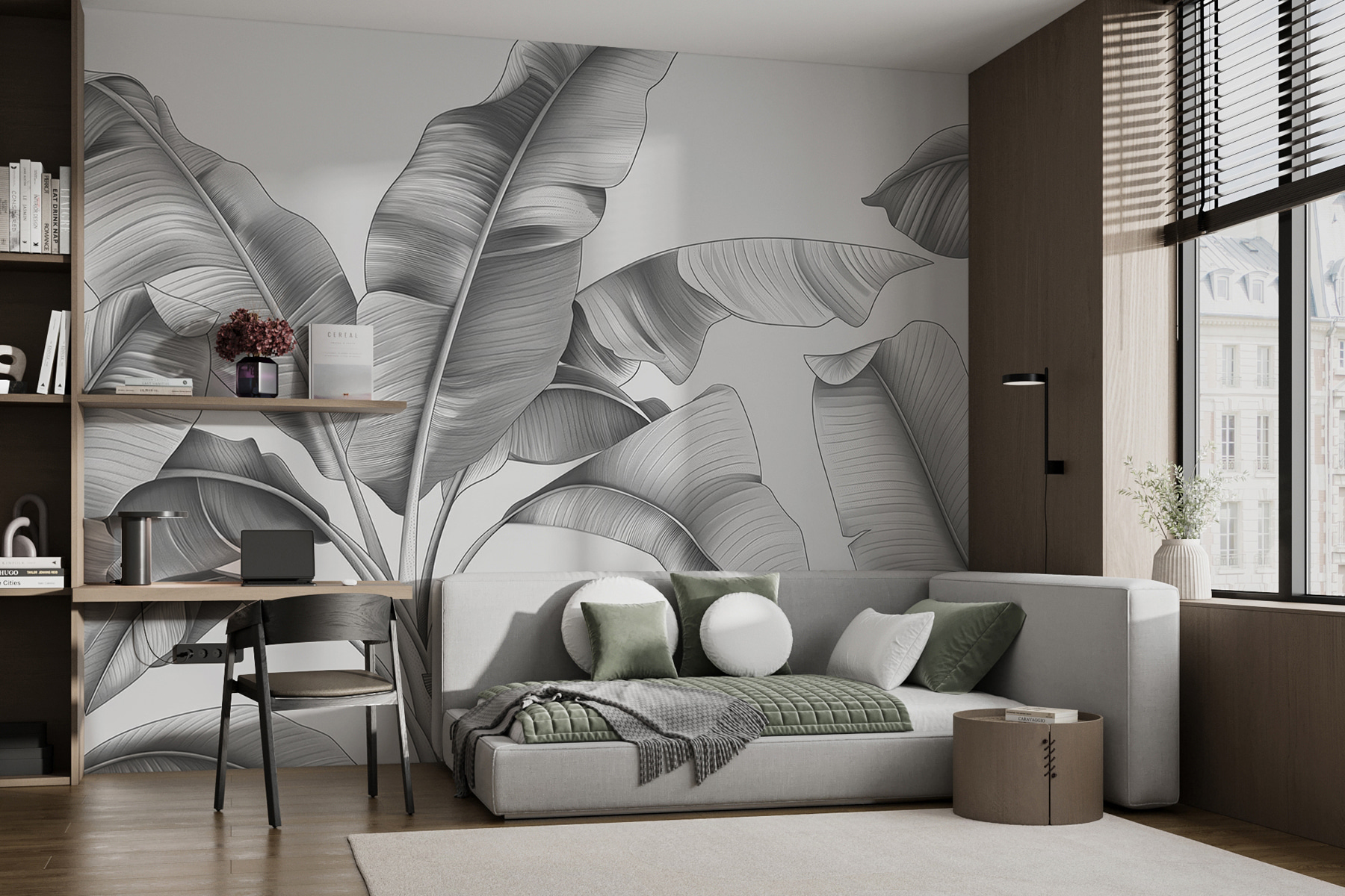 Tem um toque de escala de cinzentos, o que o torna versátil para quase todos os estilos de divisão – desde uma sala de estar moderna a um quarto sereno. Além disso, o efeito 3D acrescenta tanta profundidade que pode dar por si a tentar tocar nas folhas! A sério, há algo de tão calmante em estar rodeado de folhagem – menos a rega e os insectos, claro.
