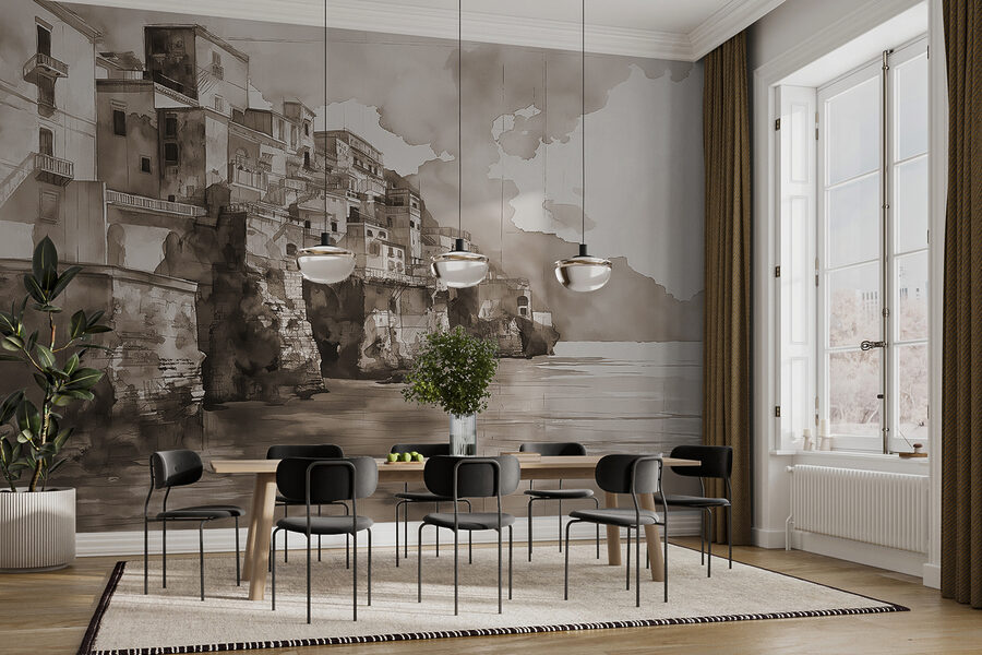 Imagine acordar e ver uma paisagem urbana que parece sussurrar histórias de becos escondidos e mercados movimentados. Este mural de aguarela envolve-o no encanto de uma cidade do velho mundo, mesmo na sua sala de estar. É como ter umas mini-férias sempre que se olha para cima. Os tons suaves e as lavagens de cor criam uma vibração calmante, perfeita para despertar um ou dois devaneios. Quer esteja a relaxar com uma chávena de café ou a receber amigos, este mural vai certamente iniciar algumas conversas – talvez até levar a um plano de viagem espontâneo!