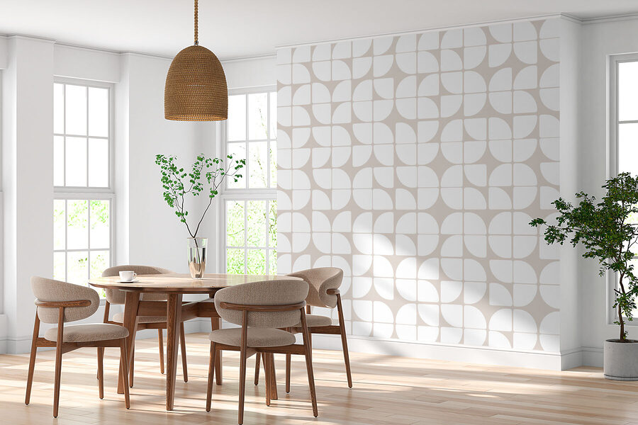 Transforme qualquer espaço com este encantador mural de parede que apresenta um padrão divertido de círculos e linhas. É como ter uma conversa divertida na sua parede – ousada mas suave, convidativa mas sofisticada. Imagine entrar numa sala e sentir instantaneamente uma vibração que diz: “Olá, criatividade!”