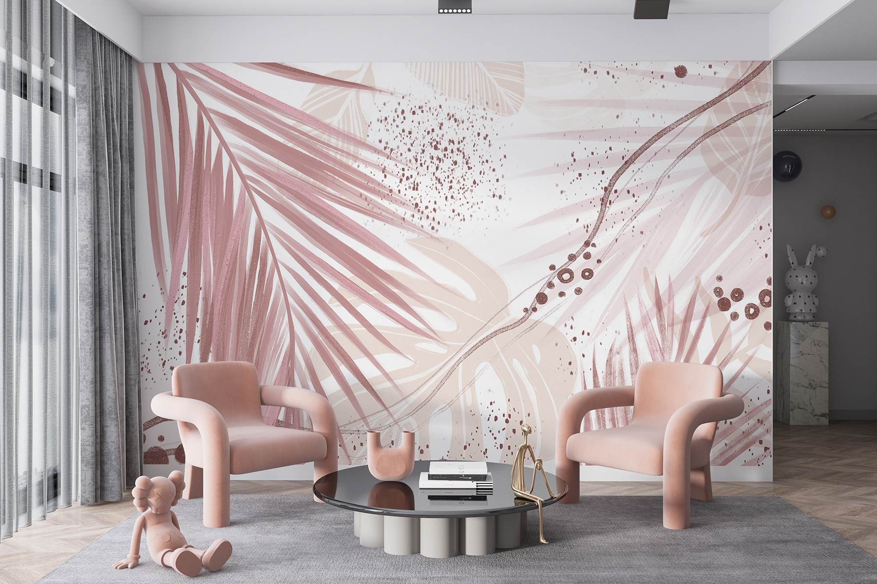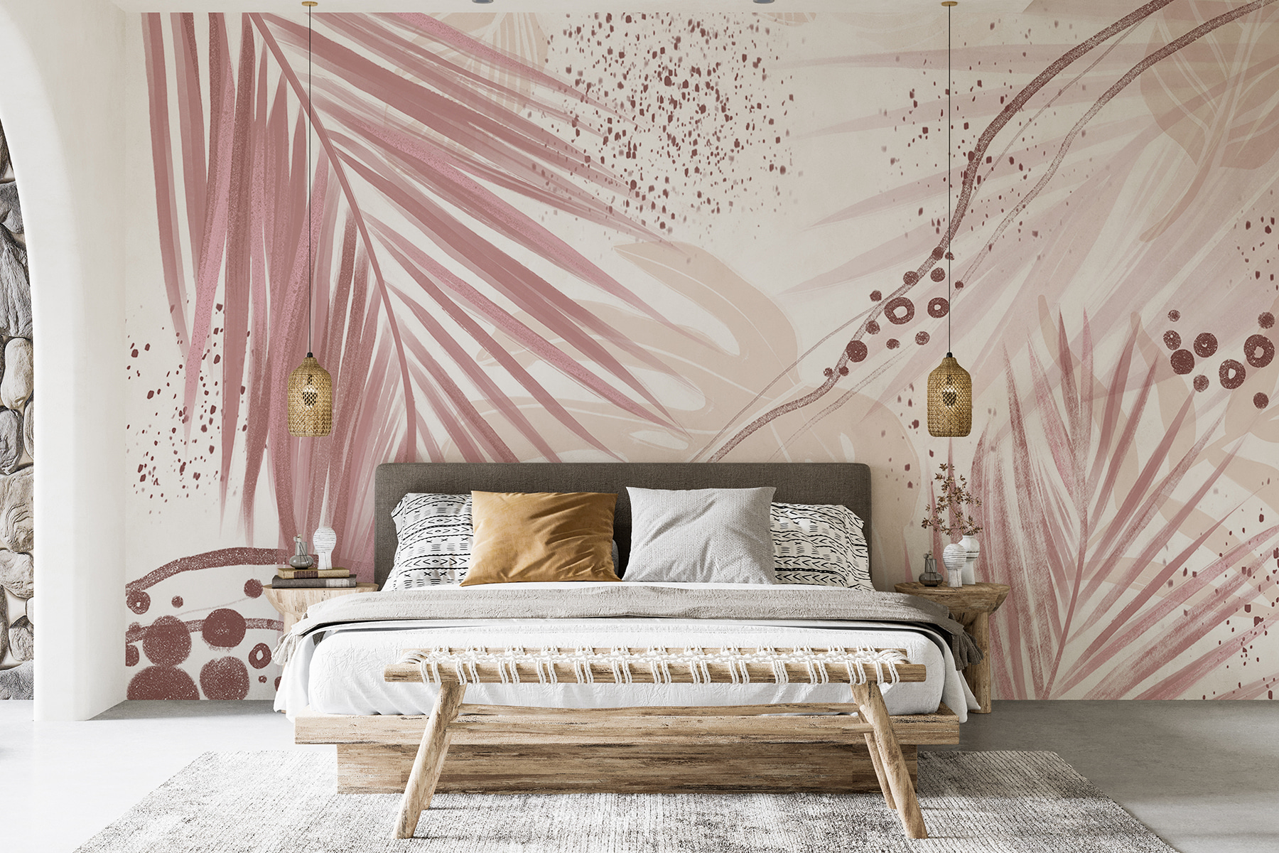 As folhas de palmeira intrincadas e os padrões abstractos misturados com rosas suaves e tons de terra… é como o sonho de um amante da natureza! É perfeito para dar um toque especial à sua sala de estar, ao seu quarto ou até ao seu escritório em casa. O que é a vida sem um toque de criatividade? Cada vez que entra na sala, é como um abraço suave da Mãe Natureza – uma pequena fuga da azáfama do dia a dia.