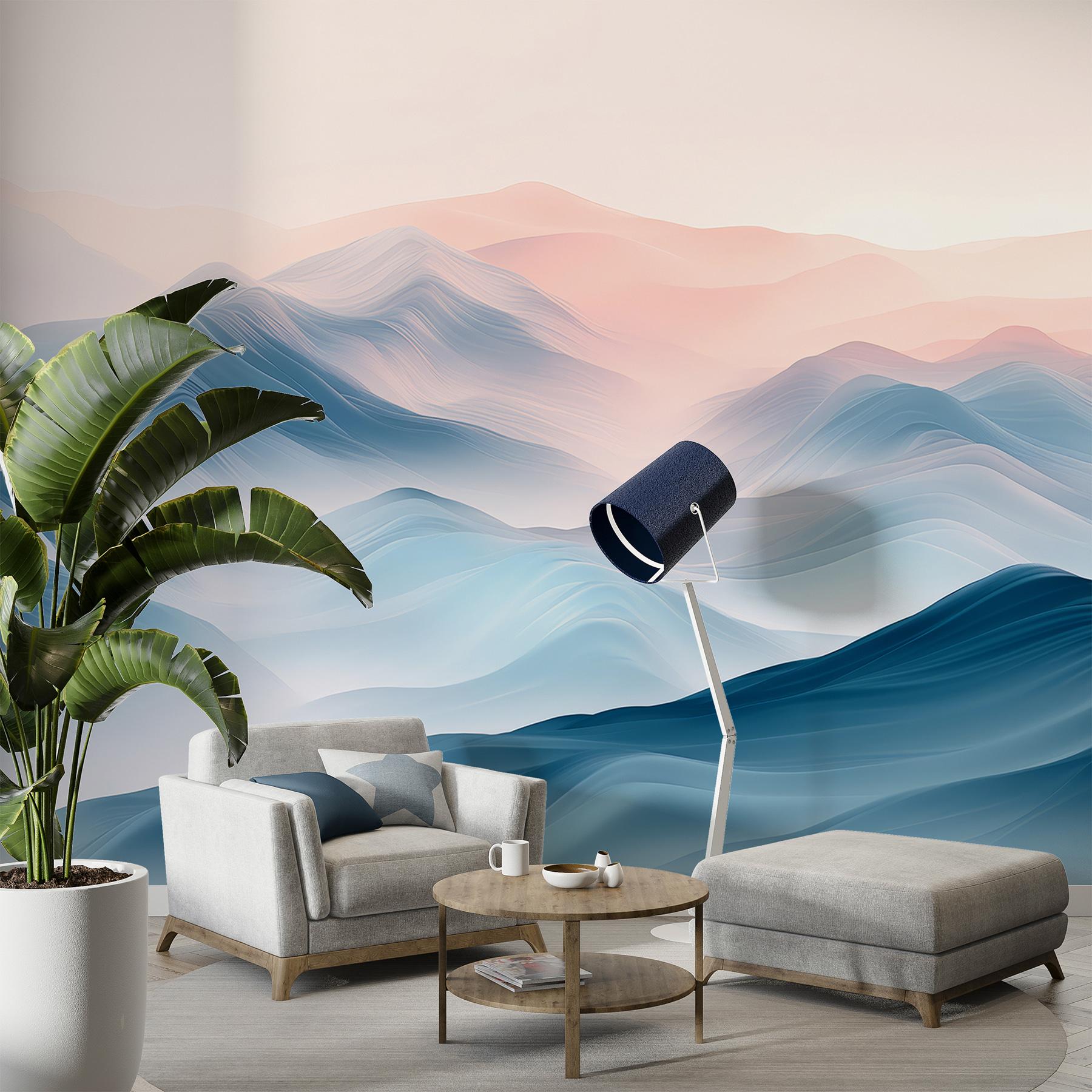 As linhas suaves e fluidas e os gradientes suaves deste mural fazem com que qualquer espaço se sinta amplo e arejado. Não é apenas um revestimento de parede, mas um portal para a tranquilidade, um início de conversa e uma tela que traz paz ao seu dia. Quem entrar em sua casa vai querer uma também – acredite!