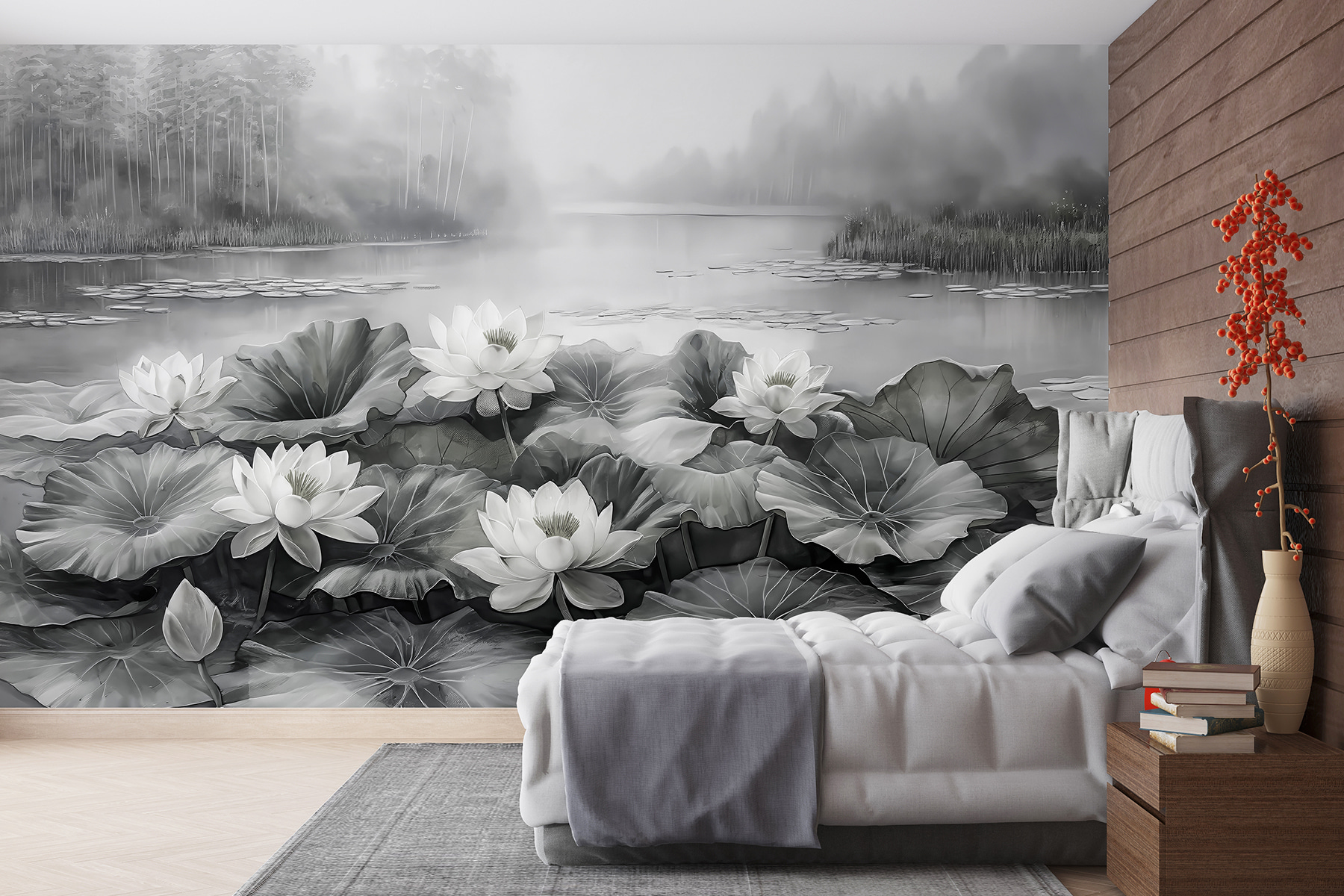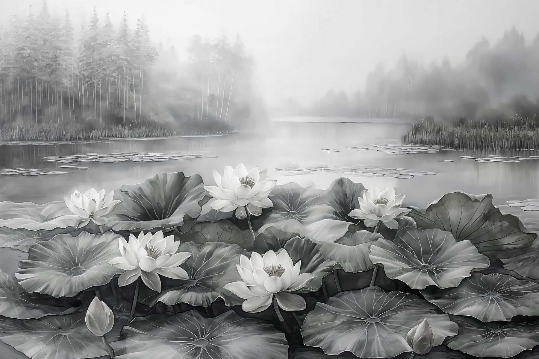 Transforme essa parede simples numa fuga serena com este mural deslumbrante de flores brancas a dançar num lago tranquilo. Imagine chegar a casa, descalçar os sapatos e ser recebido pela elegância suave destas flores. Há algo de reconfortante na forma como as ondulações suaves e o pano de fundo enevoado criam uma sensação de calma – perfeita para descontrair após um longo dia. Quer seja numa sala de estar acolhedora ou num quarto sereno, este mural traz um toque de natureza para dentro de casa, fazendo com que se sinta como um retiro tranquilo. Quem é que não quereria isso? Pense em todos os momentos passados a absorver a beleza – talvez uma chávena de chá tranquila, ou perder-se num bom livro. É como ter uma fatia da natureza mesmo em casa, convidando um pouco de serenidade para a vida quotidiana.