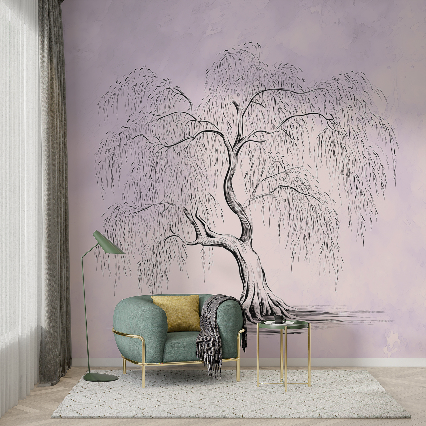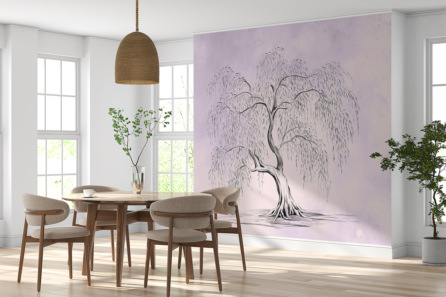 O fundo suave e desbotado, com os seus tons de lavanda e creme, cria este ambiente sereno, quase mágico. Transforma instantaneamente uma divisão num retiro calmante. Consegue imaginar-se a acordar com isto todos os dias? Ou talvez tê-la num recanto de leitura acolhedor onde se pode perder num livro com a tranquila árvore a fazer-lhe companhia? Há qualquer coisa de tão enraizante e calmante nela.