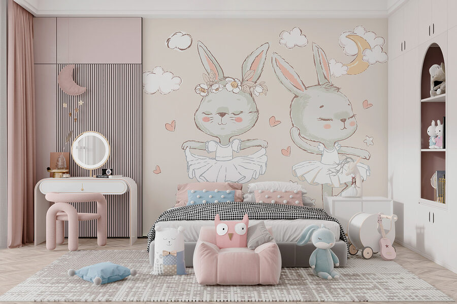 Está à procura de um mural que seja pura magia? Conheça “Murais de parede w08008”. A sério, imagine estas adoráveis bailarinas coelhinhas a girar à volta das suas paredes! É como uma dança sonhadora de nuvens fofas, corações brincalhões e uma lua suave, tudo num só – perfeito para um berçário acolhedor ou um espaço de vida caprichoso. Imagine: manhãs preguiçosas de domingo, a luz do sol a entrar, e está a bebericar o seu café com um sorriso, a ver estas criaturas encantadoras a brincar. Não se trata apenas de arte; é um encanto cativante que derreterá o seu coração sempre que o vir. Ideal para amantes de animais, sonhadores ou qualquer pessoa que precise de um pouco de capricho na sua vida – este mural transformará qualquer divisão num sonho delicioso.