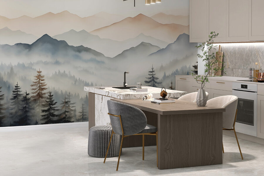 1 avaliação de Papel de parede Paisagem de montanhas com árvores e nevoeiro
