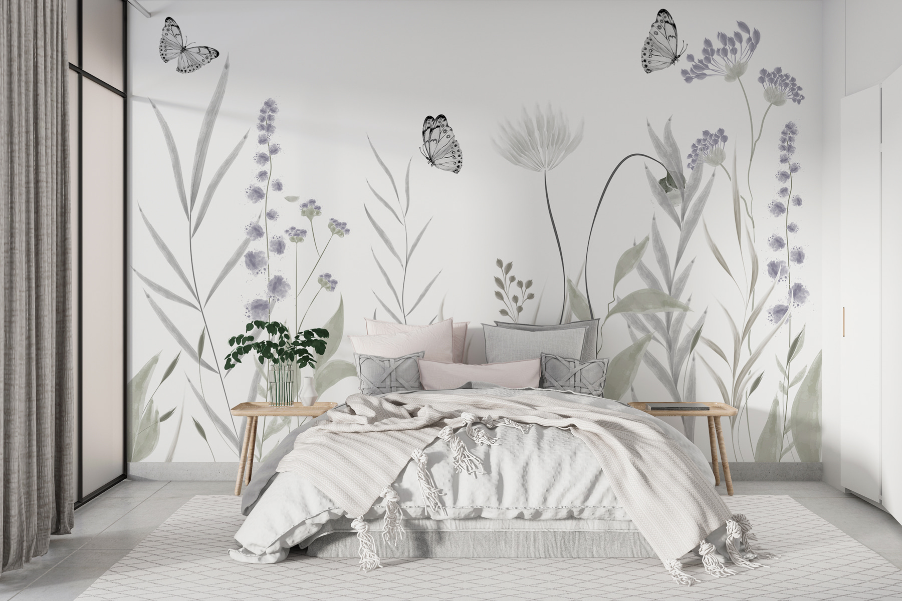 Este mural tem uma vibração caprichosa que nos aquece o coração. É como se a natureza tivesse dado um abraço gentil na sua parede. Imagine a luz do sol da manhã a dançar através destes tons suaves – é mágico! Coloque-a onde quiser um toque de tranquilidade – no seu quarto, num recanto de leitura acolhedor ou talvez até na sala de estar. Até as manhãs mundanas podem parecer especiais com uma beleza tão pacífica na sua parede. Então, porque não adicionar um toque de charme da natureza e uma pitada de magia de aguarela ao seu espaço? 🦋