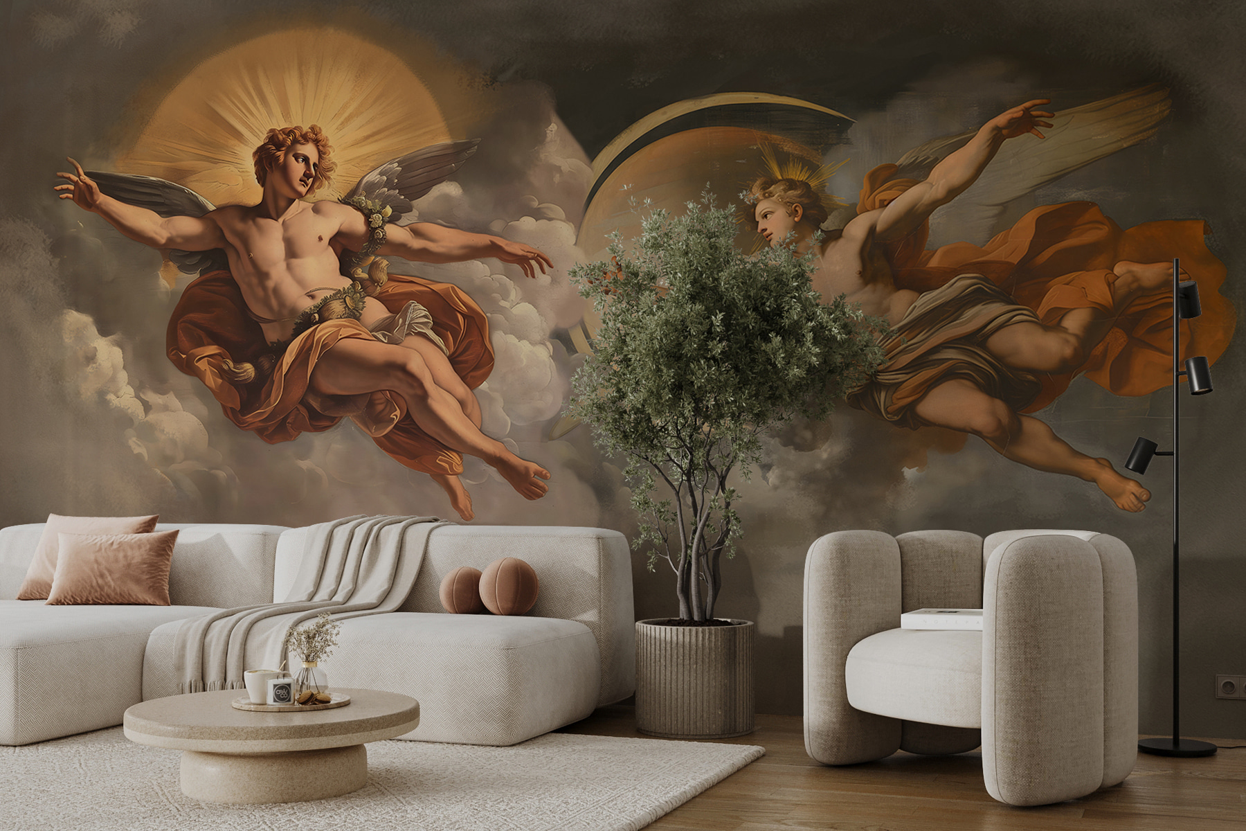 Entre num mundo de maravilhas com o “Mural de parede w08137”. Imagine acordar todas as manhãs sob o brilho celestial deste deslumbrante mural – é como ter um pedaço do céu mesmo em sua casa! Com tons de luz do dia de cortar a respiração e nuvens de sonho, combina sem esforço a arte clássica com a magia moderna. Imagine duas figuras que se estendem através do tempo e do espaço, a sua presença poderosa e serena traz uma sensação de paz e admiração.