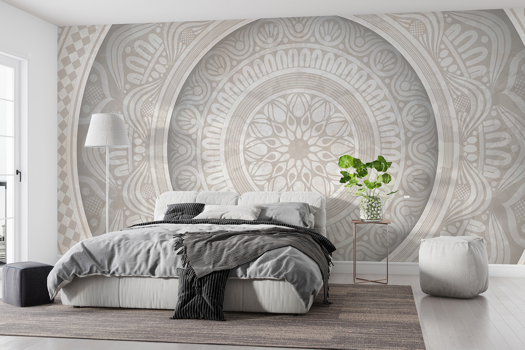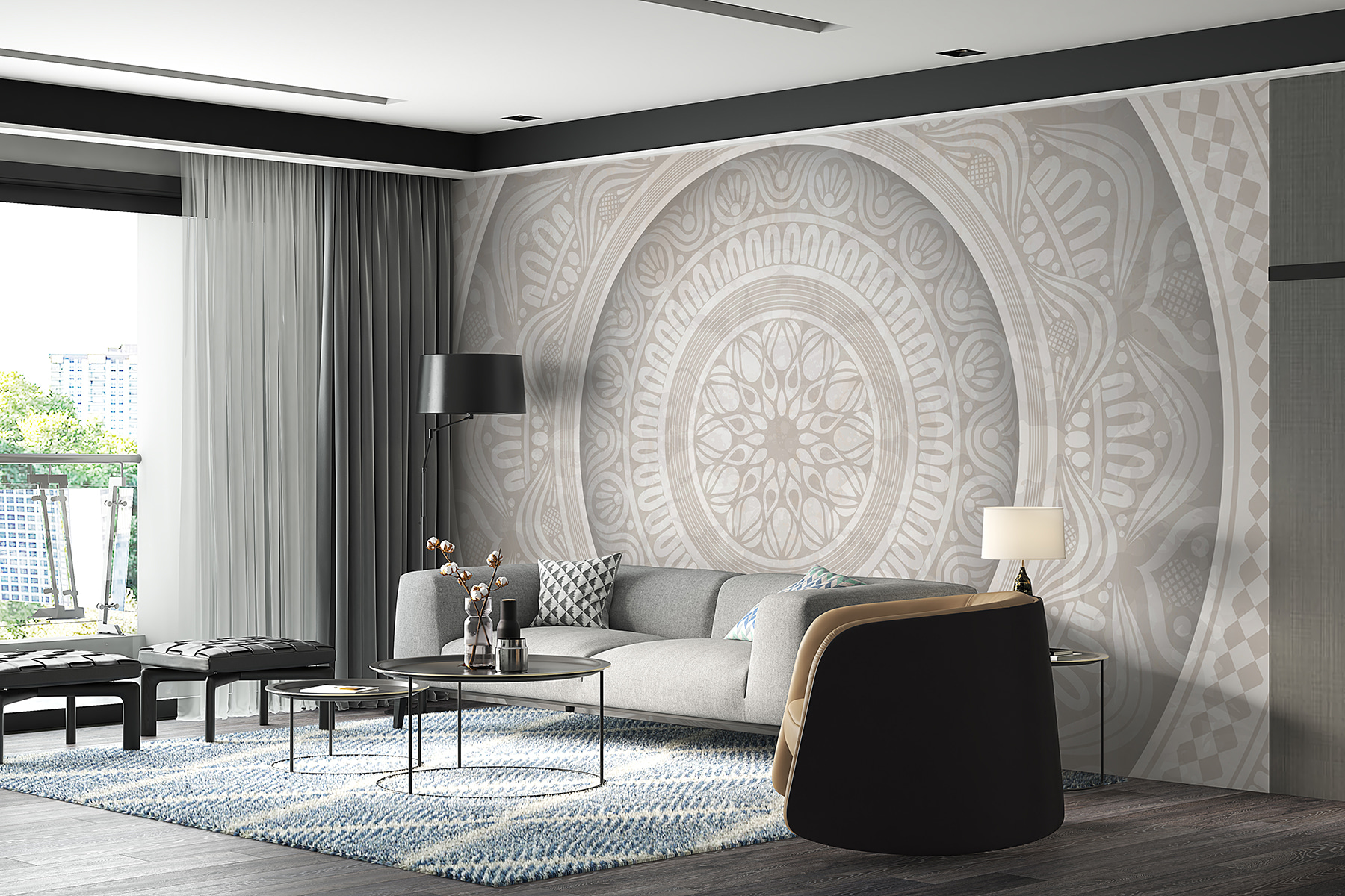 Transforme qualquer parede monótona num tema de conversa com este deslumbrante mural que apresenta um padrão circular num fundo brilhante. Imagine entrar numa divisão e ser recebido por uma dança hipnotizante de formas – como um abraço suave nas suas paredes. Os tons suaves criam uma atmosfera convidativa, perfeita para conversas aconchegantes ou maratonas de leitura solitárias. É como ter uma obra de arte que dá vida ao espaço sem esforço. A família e os amigos vão certamente parar para a admirar e talvez até perguntar de onde veio. E quem não gostaria de ter um pouco de geometria divertida na sua vida quotidiana?