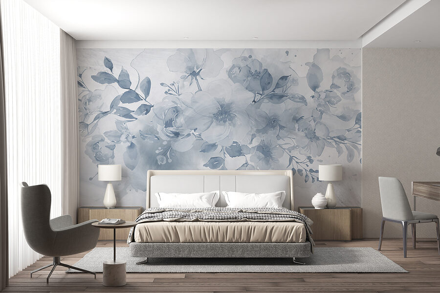 Com certeza! Imagine entrar numa sala e ser recebido por este mural de parede – simplesmente deslumbrante, certo? Quero dizer, basta olhar para estas flores suaves e sonhadoras! É como se uma pintura em aguarela beijasse a sua parede. Já consegue sentir a serenidade? Perfeito para criar um espaço calmo e convidativo, quer seja numa sala de estar acolhedora ou num quarto sereno.