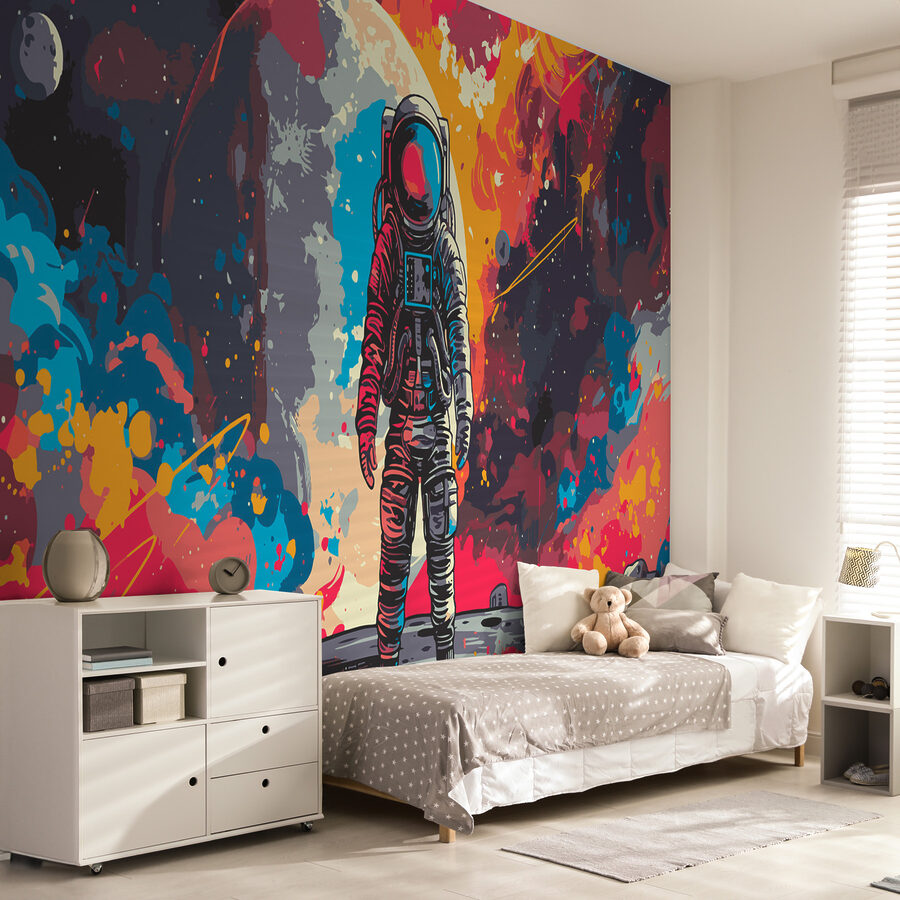 Imagine um astronauta, saído diretamente dos seus sonhos espaciais mais loucos, de pé contra uma explosão de cenário interestelar. É como uma festa de dança cósmica sempre que olha para ele! Perfeito para quem procura acrescentar um elemento de maravilha e possibilidades ilimitadas ao seu quarto. Crianças, adultos – toda a gente vai perder-se nas suas vibrações encantadoras de galáxia. É o tipo de mural que nos faz pensar, sonhar e talvez até planear uma viagem às estrelas!