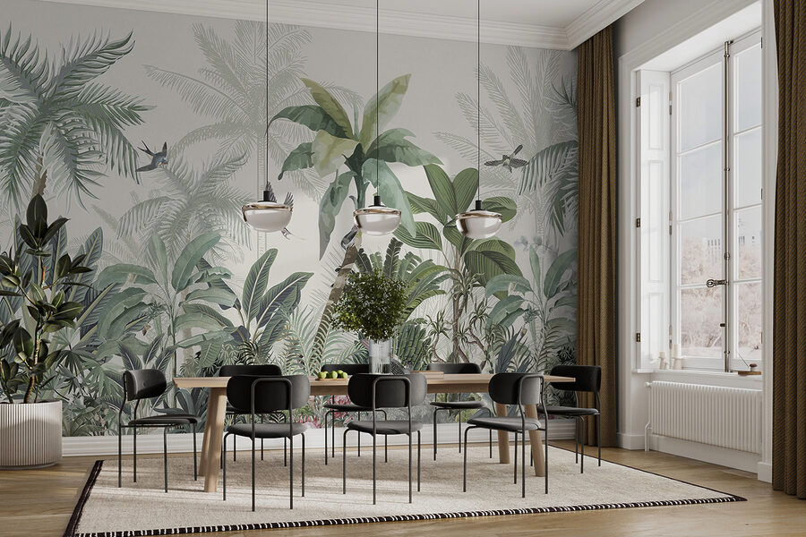 Transforme qualquer espaço num paraíso tropical com este deslumbrante mural. É como ter um pedaço da selva mesmo em casa, com vegetação luxuriante e pássaros alegres a esvoaçar. Imagine bebericar o seu café da manhã enquanto é recebido por vibrações suaves e tropicais – a sério, pode haver uma melhor maneira de começar o dia? Este papel de parede não muda apenas a divisão; convida a natureza para dentro de casa, sussurrando tardes de brisa e aventuras banhadas pelo sol. Perfeito para uma sala de estar ou mesmo para um recanto de leitura acolhedor, é uma pequena fuga mesmo nas suas paredes. Cada olhar parece uma mini-férias, mesmo no conforto do lar.