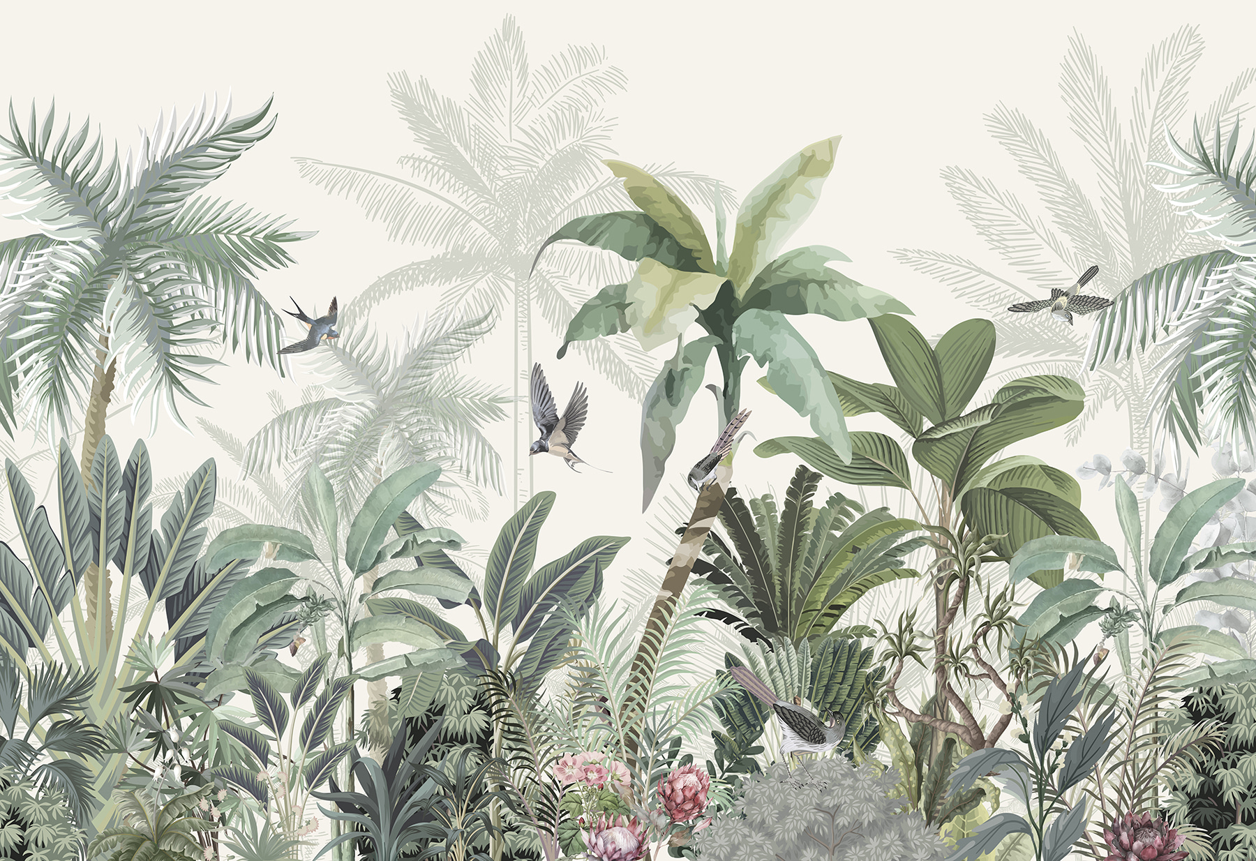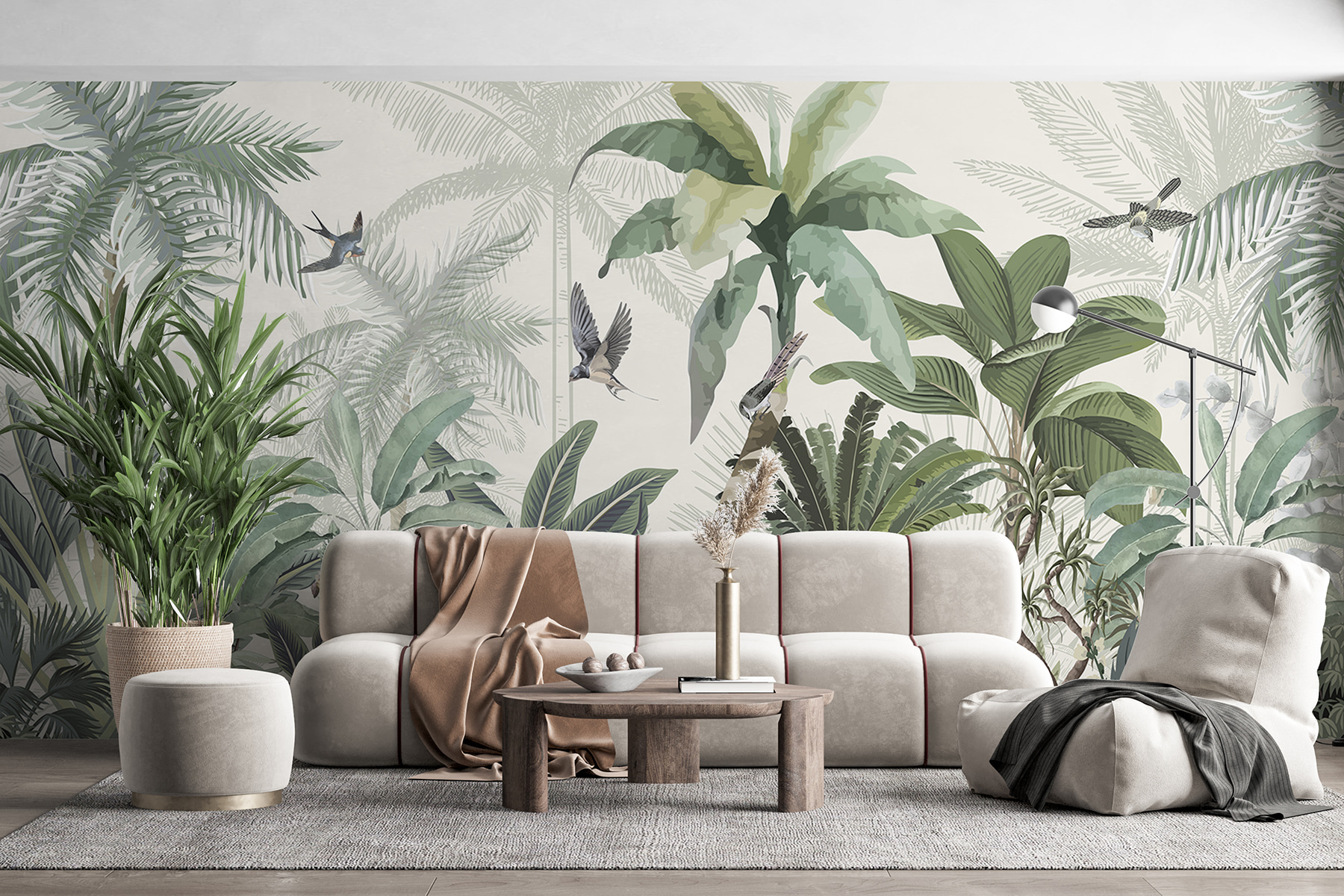 Transforme qualquer espaço num paraíso tropical com este deslumbrante mural. É como ter um pedaço da selva mesmo em casa, com vegetação luxuriante e pássaros alegres a esvoaçar. Imagine bebericar o seu café da manhã enquanto é recebido por vibrações suaves e tropicais – a sério, pode haver uma melhor maneira de começar o dia? Este papel de parede não muda apenas a divisão; convida a natureza para dentro de casa, sussurrando tardes de brisa e aventuras banhadas pelo sol. Perfeito para uma sala de estar ou mesmo para um recanto de leitura acolhedor, é uma pequena fuga mesmo nas suas paredes. Cada olhar parece uma mini-férias, mesmo no conforto do lar.