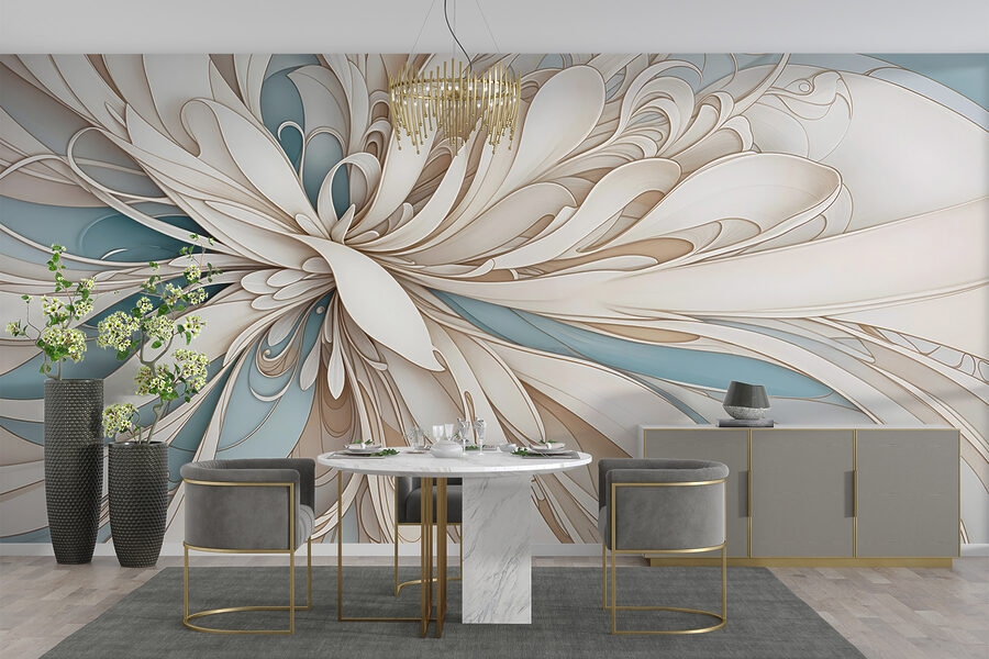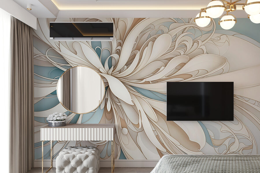 Imagine acordar com uma dança de redemoinhos brancos e azuis na sua parede, como ondas que se encontram com nuvens num abraço suave. Este mural é como um segredo sussurrado pela própria natureza, mesmo na sua sala de estar. É parte sonho, parte arte moderna e tudo sobre como transformar o mundano em magia. Imagine que está a organizar um jantar e alguém se perde nos seus padrões – a conversa transforma-se em agradáveis reflexões sobre a arte e a vida. Não é apenas decoração, é uma experiência. Um toque de zen, um toque de céu… quem diria que uma parede poderia parecer poesia?