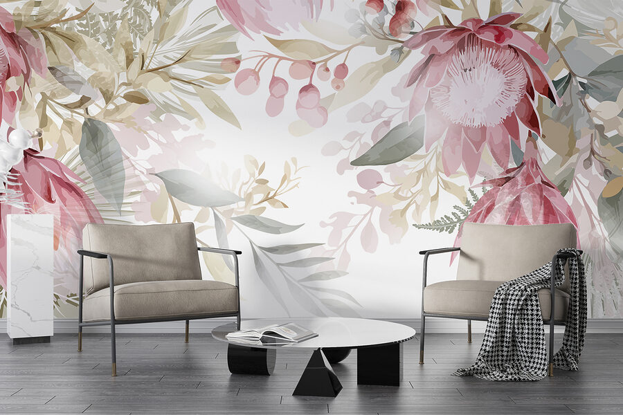 Papel de parede Arte de aguarela floral caprichosa (REF: w08315)