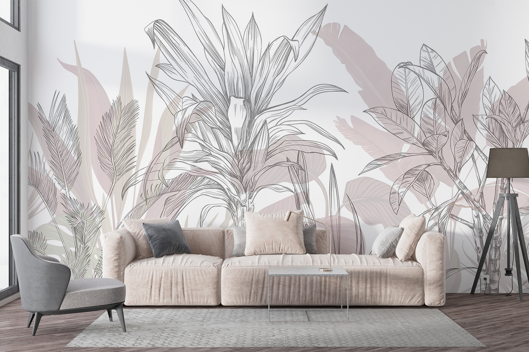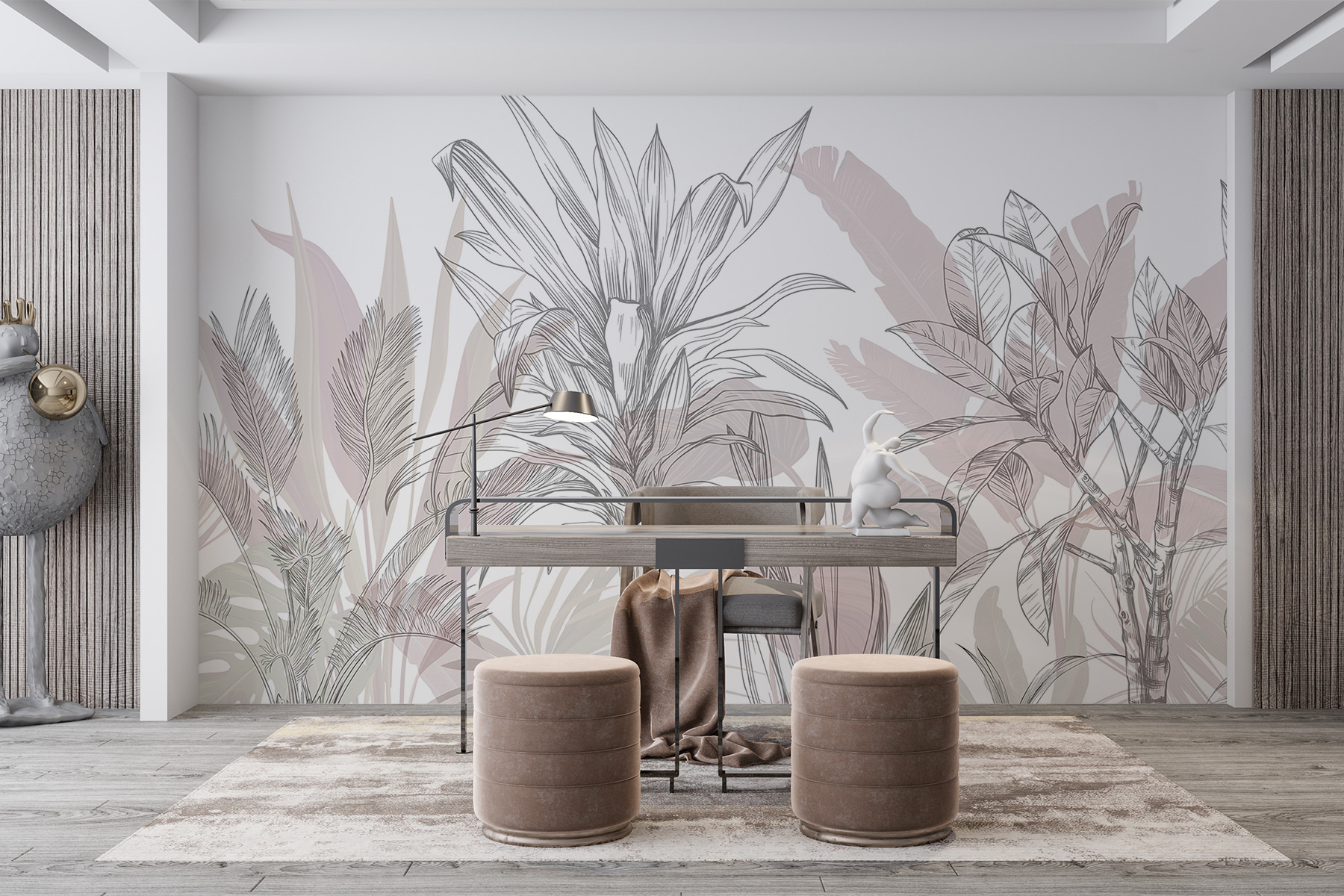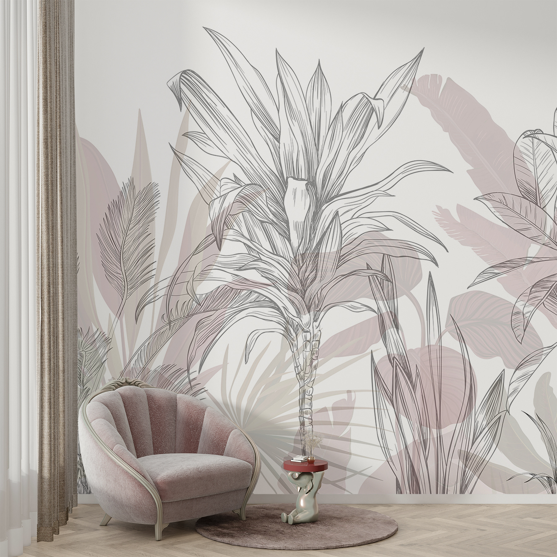 Transforme uma parede sem graça num paraíso tropical com Ethereal Sketches of Tropical Flora. Imagine-se a entrar numa selva serena sempre que passa por ela – aquelas folhas de palmeira exuberantes quase parecem balançar ao sabor da brisa. O trabalho de linhas suaves traz uma sensação de calma e elegância, enquanto as cores suaves facilitam a mistura com qualquer mobiliário. É como ter umas mini-férias em casa, sem o protetor solar e as complicações da viagem. Os amigos vão perguntar-se de onde vêm as suas vibrações zen. A sério, quem não gostaria de ter um pouco do paraíso dentro de casa?
