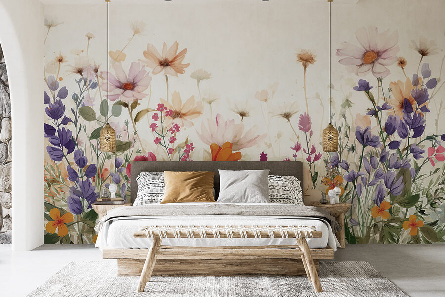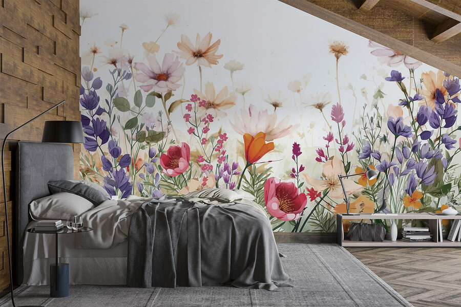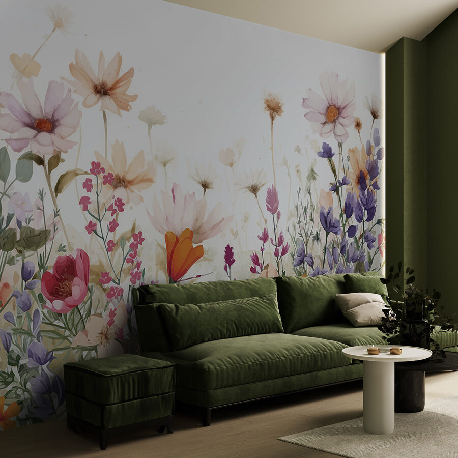 Com certeza! Imagine entrar numa sala onde a natureza sussurra à sua volta. Este mural – sim, um belo grupo de flores em aguarela num fundo branco limpo – é como ter um mini-jardim mesmo dentro de casa. Perfeito para iluminar qualquer parede sem brilho, tem aquela vibração calmante como uma suave manhã de primavera. Sabe, do tipo que dá vontade de beber um chá e esquecer todas as preocupações. É um toque de alegria, uma pitada de cor e pode ser o estímulo de que o seu espaço precisa para se sentir como um retiro acolhedor.