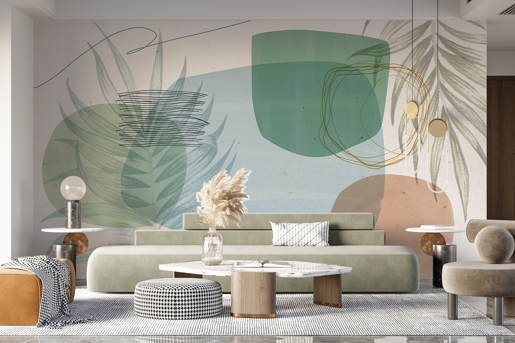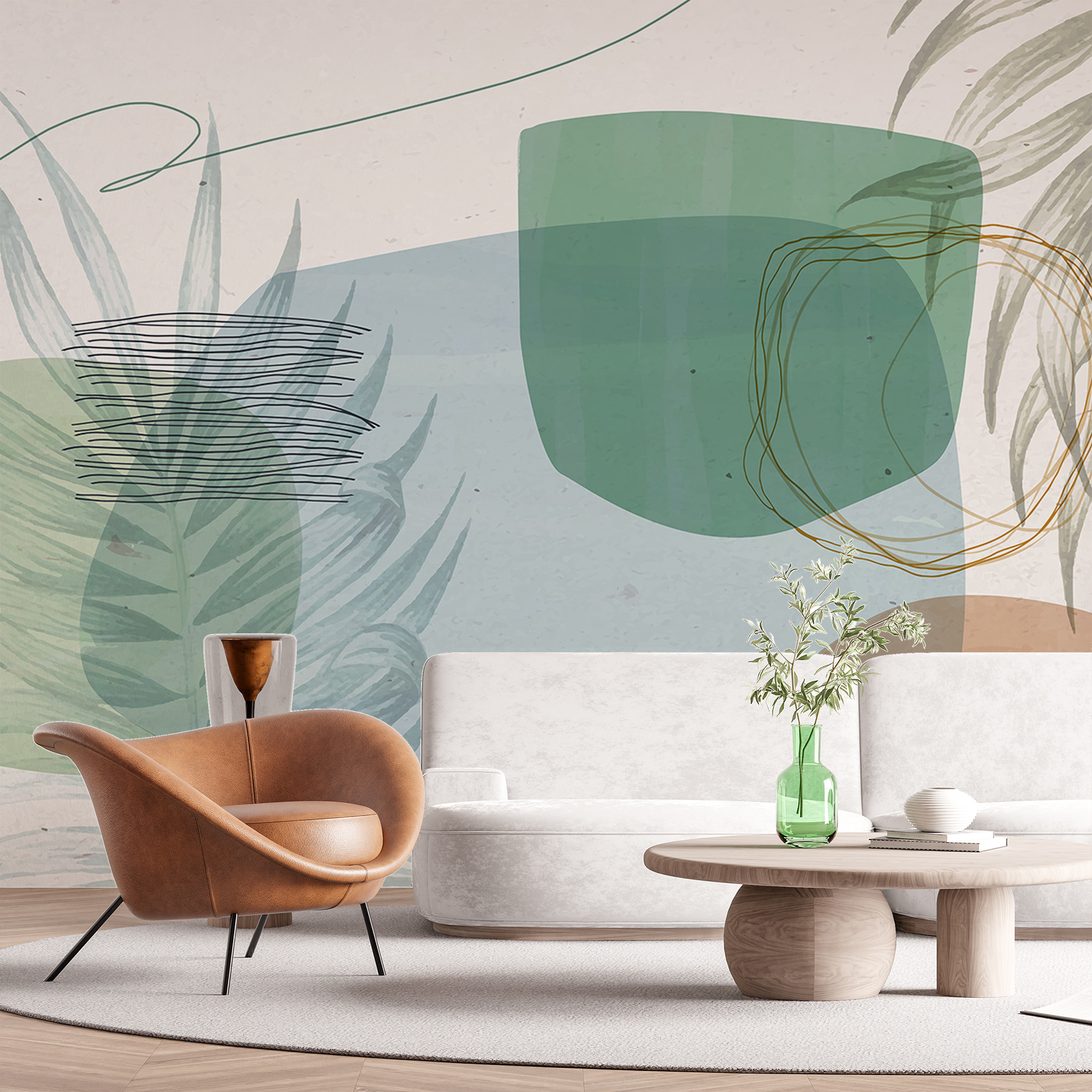 Imagine entrar numa sala onde os sussurros da natureza dançam alegremente nas suas paredes. Este mural “Abstract Botanical Shapes and Lines” traz um toque suave do ar livre para o interior, sem a preocupação de regar uma única planta. Os verdes e os castanhos suaves misturam-se sem esforço, como uma conversa sussurrada entre folhas. Perfeito para criar uma fuga serena da azáfama diária, este mural é o seu bilhete para um santuário sem stress. Bónus: não é necessário um polegar verde! É um pequeno pedaço de zen, todos os dias.