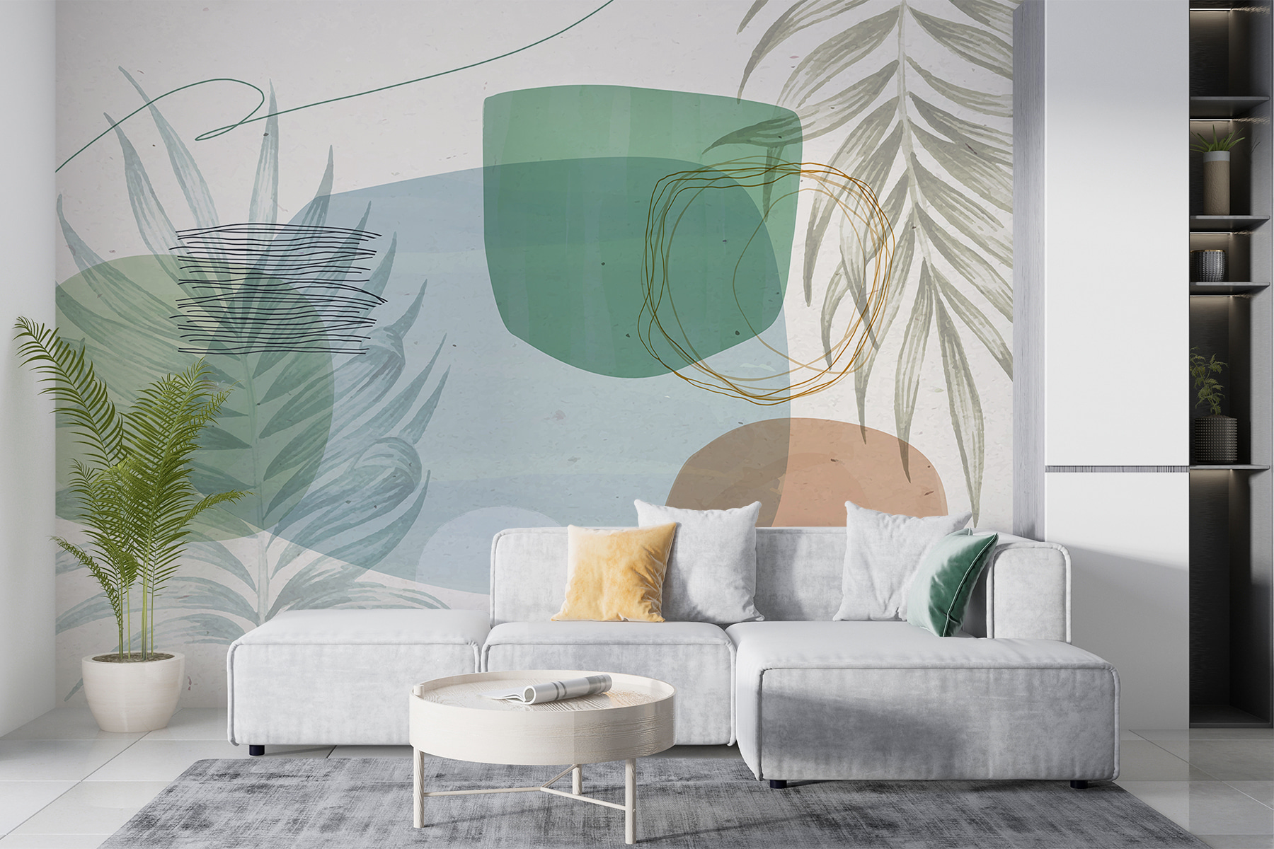 Papel de parede Formas e linhas botânicas abstractas Papel de parede Formas e linhas botânicas abstractas