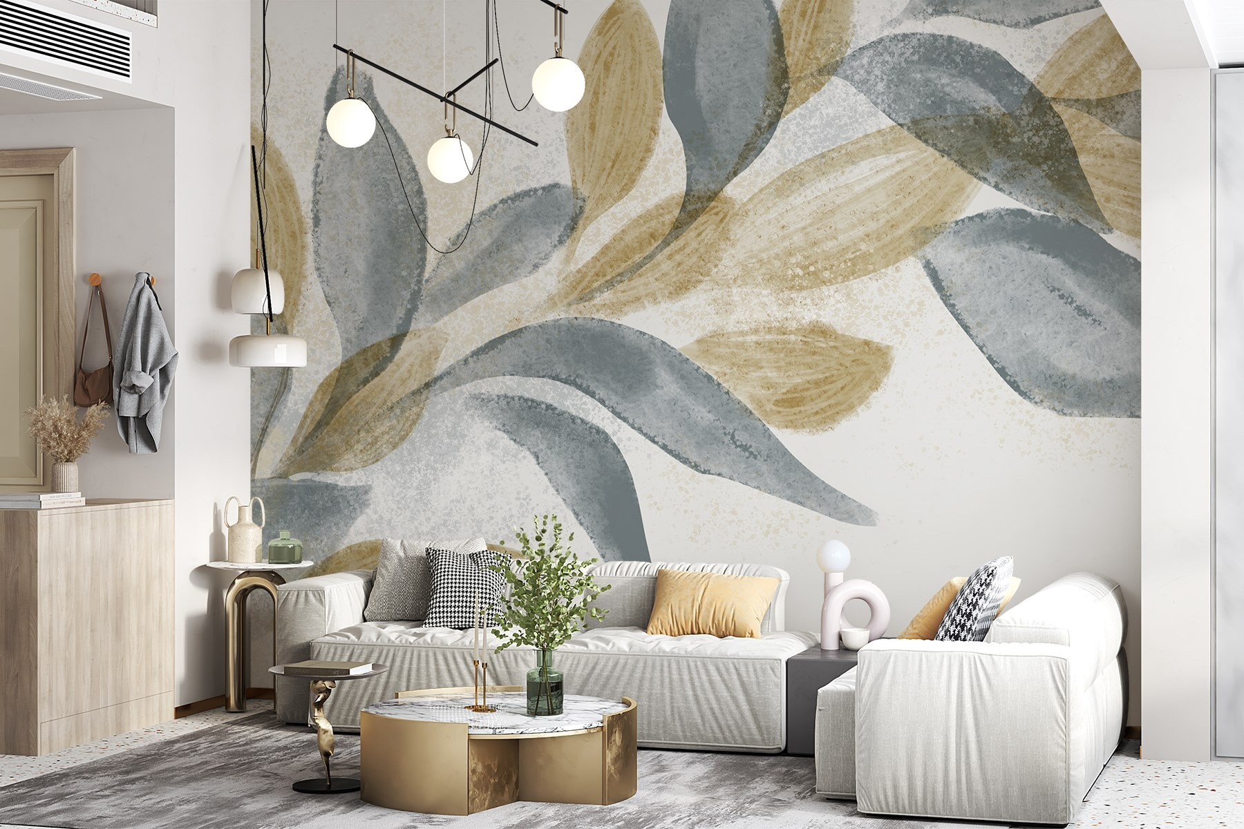 Os amigos vão admirar a forma como ilumina o seu espaço, provocando conversas sobre os seus próprios desenhos. As suaves pinceladas sussurram histórias de manhãs calmas e tardes ensolaradas. Quer esteja num recanto acolhedor ou numa sala de família movimentada, este mural acrescenta um toque de tranquilidade e estilo que é perfeito – nunca excessivo, sempre convidativo. Por isso, deixe-se envolver por estas folhas suaves no seu abraço pacífico; afinal, quem não quer um pouco mais de zen na sua vida?
