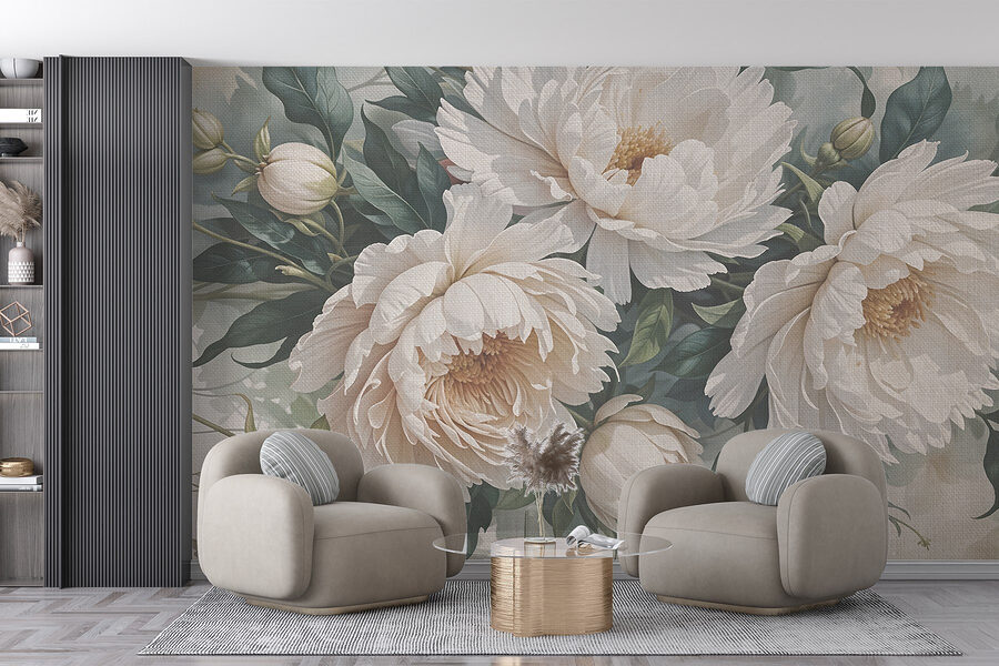 Transforme qualquer espaço com o encantador mural “Delicate Blooms in Soft Hues”. Imagine entrar num jardim sereno onde as peónias florescem em sussurros suavemente sombreados de branco e verde. Este design traz não só beleza, mas também um ar de calma que se sente como um abraço suave depois de um longo dia. Perfeito para um recanto de leitura acolhedor ou para um quarto de sonho, é como ter um pedaço de natureza dentro de casa. Os amigos podem passar por cá, admirar a sua parede e, de repente, passa a ser o anfitrião com mais – boa sorte para os impedir de se mudarem! Acrescente um toque de elegância à sua decoração, porque quem não gostaria de ter um amigo florido na parede?