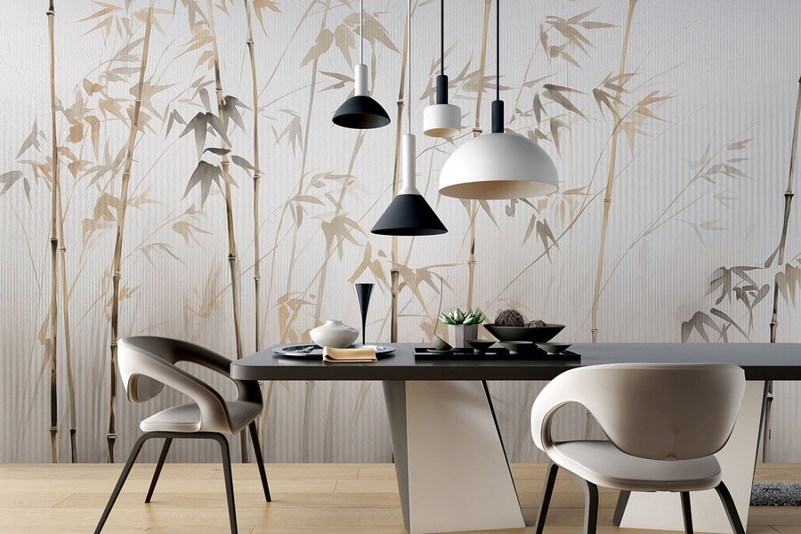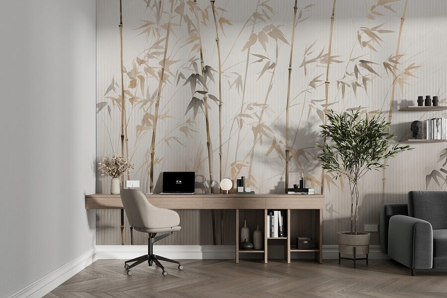 Transforme o seu espaço com o encantador “Bamboo Silhouettes in Soft Tones”. Este mural sussurra serenidade, trazendo a beleza da natureza para dentro de casa sem os incómodos insectos ou sapatos enlameados. Imagine entrar num bosque de bambus calmo sempre que olhar para a sua parede. Os tons suaves criam um cenário suave, perfeito para noites acolhedoras ou reuniões animadas. É como dar um abraço caloroso ao seu quarto! Para além disso, combina bem com tudo – pense numa decoração com tons de terra ou minimalista. Não se trata apenas de papel de parede; é uma pequena fuga para a tranquilidade mesmo em casa. Porquê contentar-se com paredes simples quando pode convidar uma pacífica floresta de bambu para a sua vida?