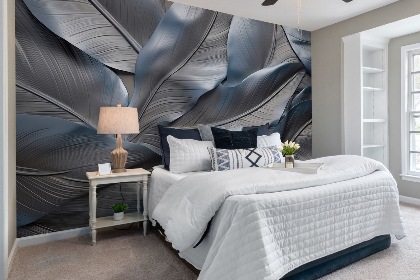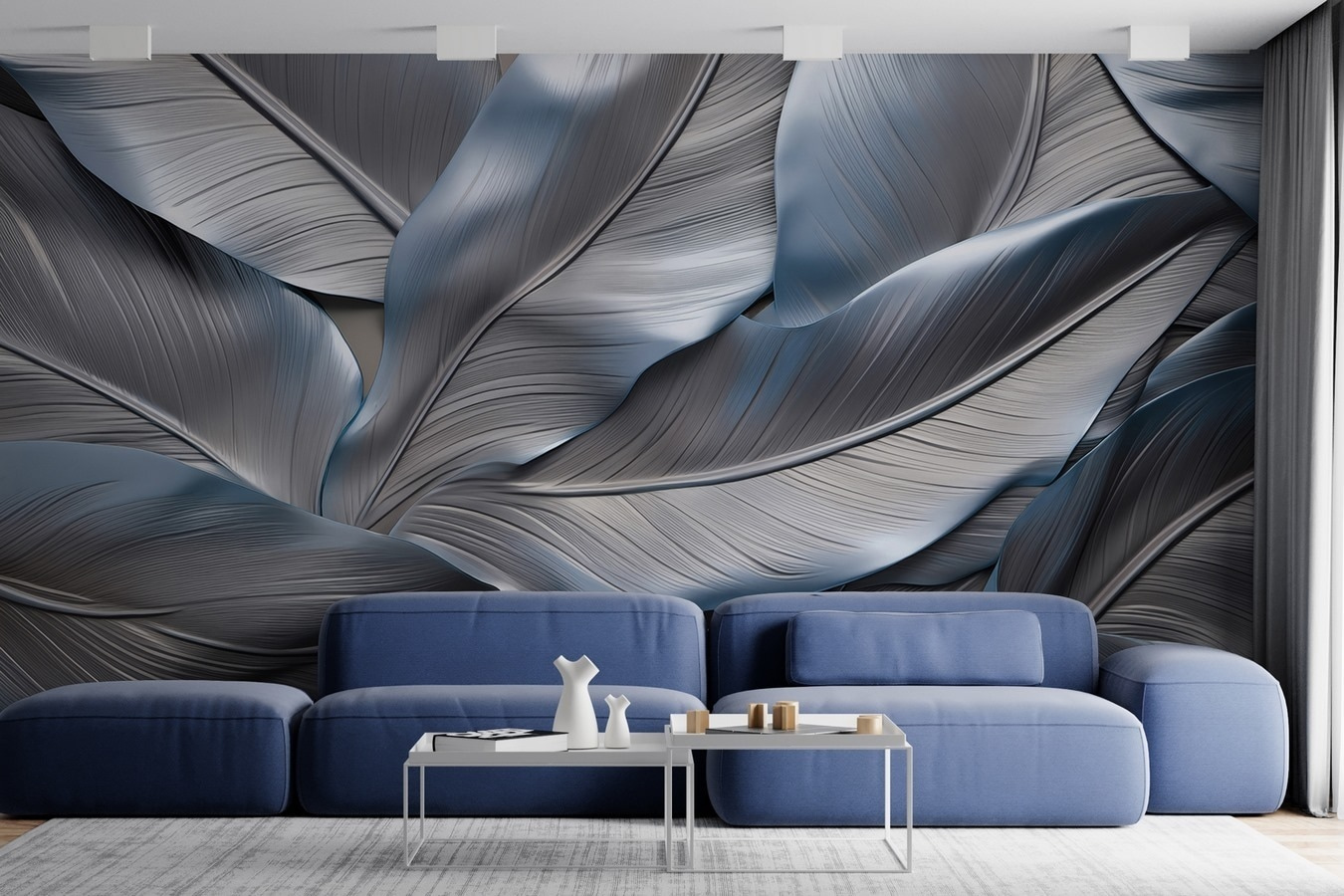 Papel de parede Folhas texturizadas em tons frios Papel de parede Folhas texturizadas em tons frios