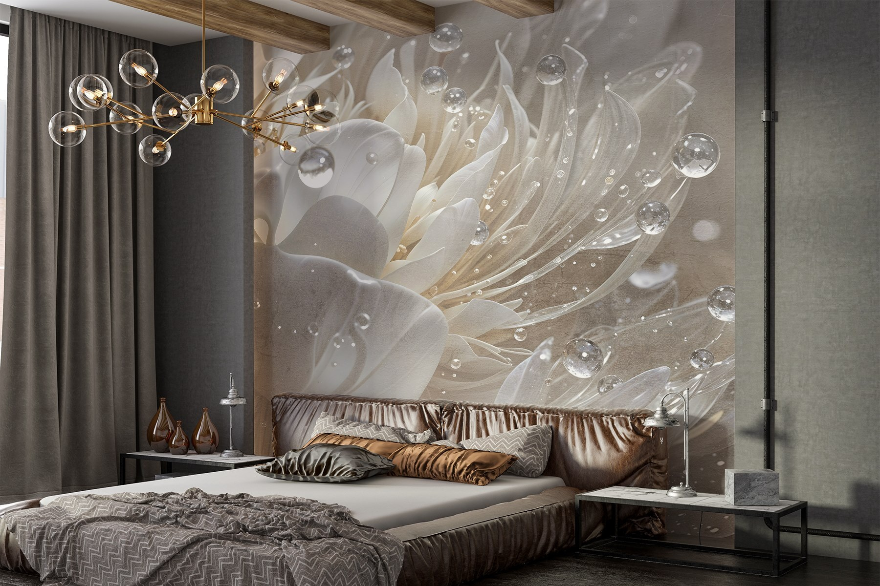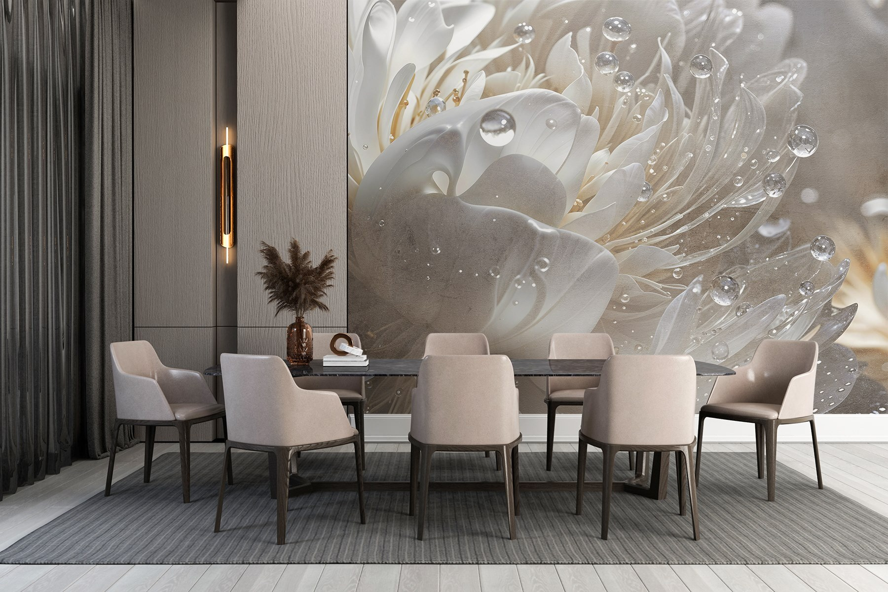 Papel de parede Pétalas delicadas adornadas com gotas (REF: w08402)