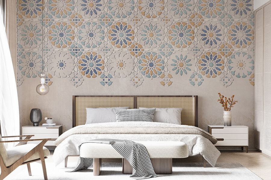 O mural que encomendámos é espantoso! As cores são lindas, e a qualidade é de primeira qualidade. Foi fácil de instalar, e tem um aspeto fantástico no nosso quarto. Recomendo vivamente!
