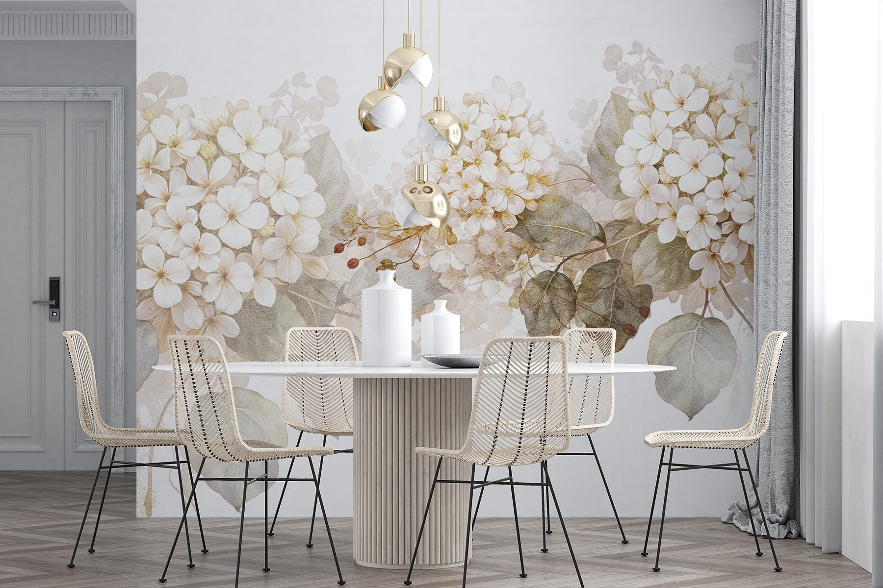Transforme o seu espaço com a beleza serena de “Serene Blossoms in Soft Hues”. Este mural de parede é como envolver o seu quarto num abraço suave da natureza. Imagine acordar com uma cascata suave de flores delicadas que sussurram “calma” sempre que passa por elas. A mistura de cores suaves parece uma lufada de ar fresco, aliviando o caos da vida quotidiana. Perfeito para uma sala de estar acolhedora ou um oásis de paz no quarto, convida ao calor e à tranquilidade. Além disso, é difícil não sorrir quando se é recebido por flores tão bonitas. Quem não gostaria que as suas paredes florescessem?