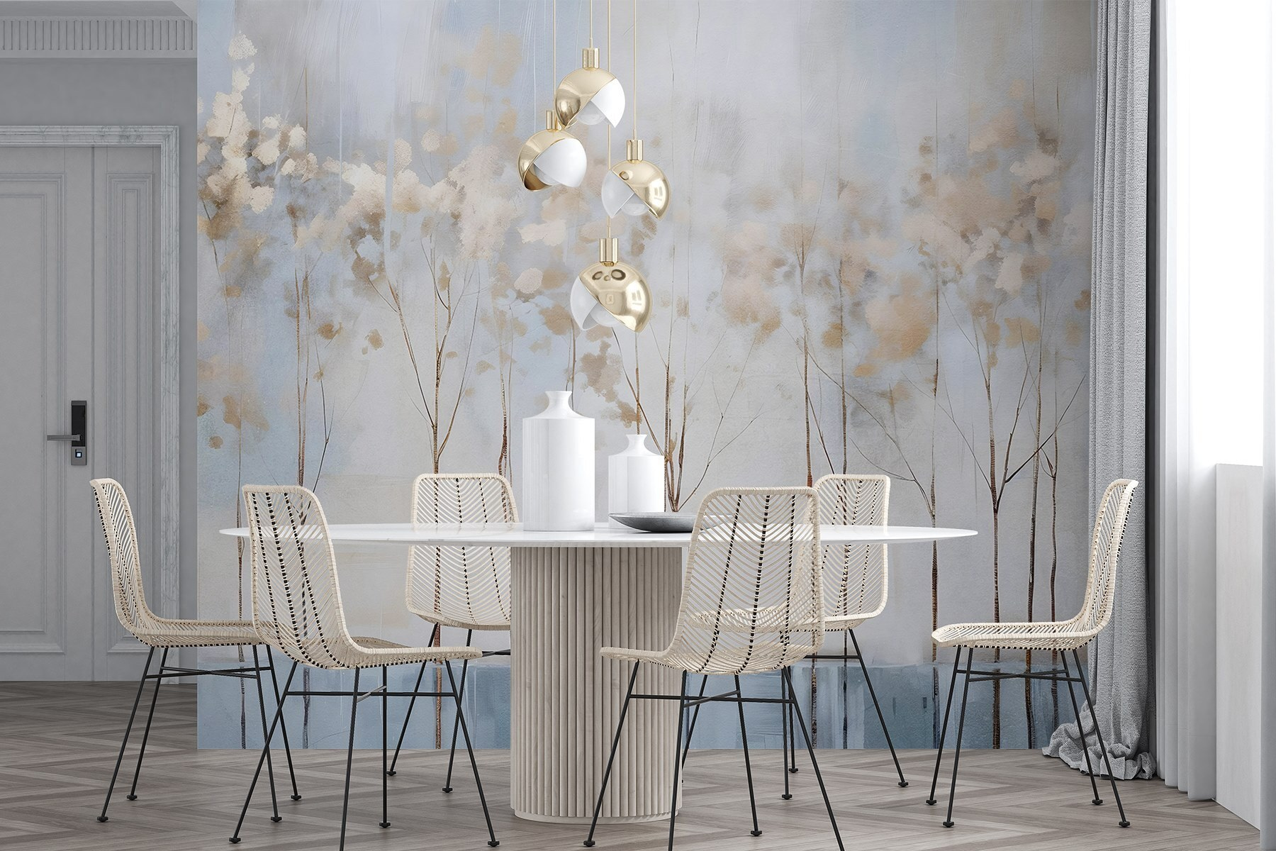 Imagine entrar numa sala onde uma fila serena de árvores o saúda com suaves sussurros da natureza. Esta “Pintura de murais de parede de árvores em fila” transforma qualquer parede num refúgio convidativo. As cores suaves e as pinceladas de aguarela criam uma vibração calmante – perfeita para um recanto acolhedor ou um escritório doméstico animado. Imagine-se a beber um chá, a olhar para estas árvores delicadas e a sentir todo o seu stress a desaparecer. É como trazer uma fatia do ar livre para dentro de casa, sem os mosquitos. Com este mural, cada olhar torna-se num mini retiro. É um pequeno pedaço de tranquilidade, à espera de ser desfrutado.