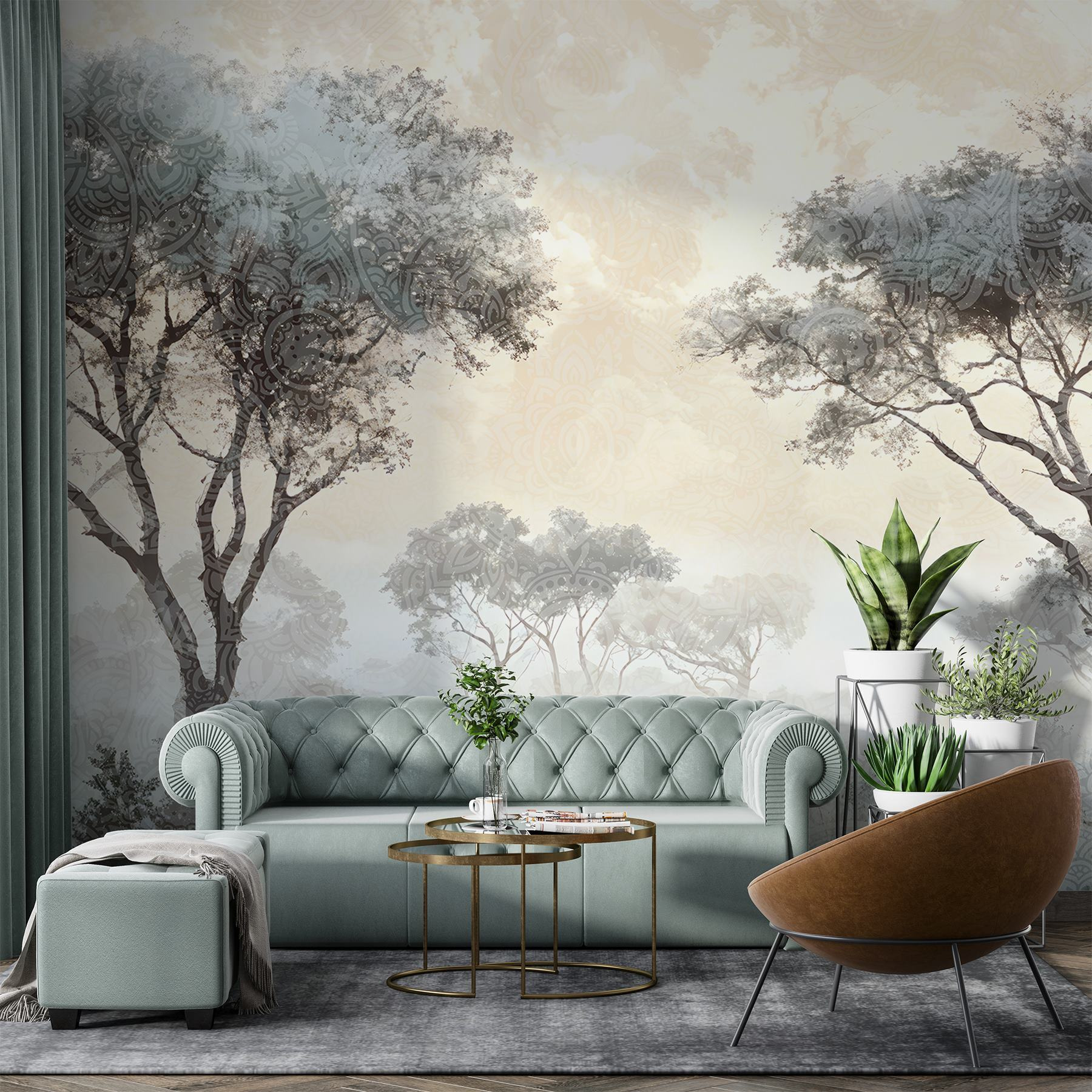 Transforme qualquer divisão numa fuga serena com este mural de parede “Foggy Landscape with Trees and Plants”. Imagine entrar num bosque de sonho, onde a névoa matinal envolve suavemente árvores altas e plantas suaves. É como trazer uma pequena fatia da natureza para o interior – perfeito para criar um recanto de leitura calmo ou um canto acolhedor para conversas de coração para coração.