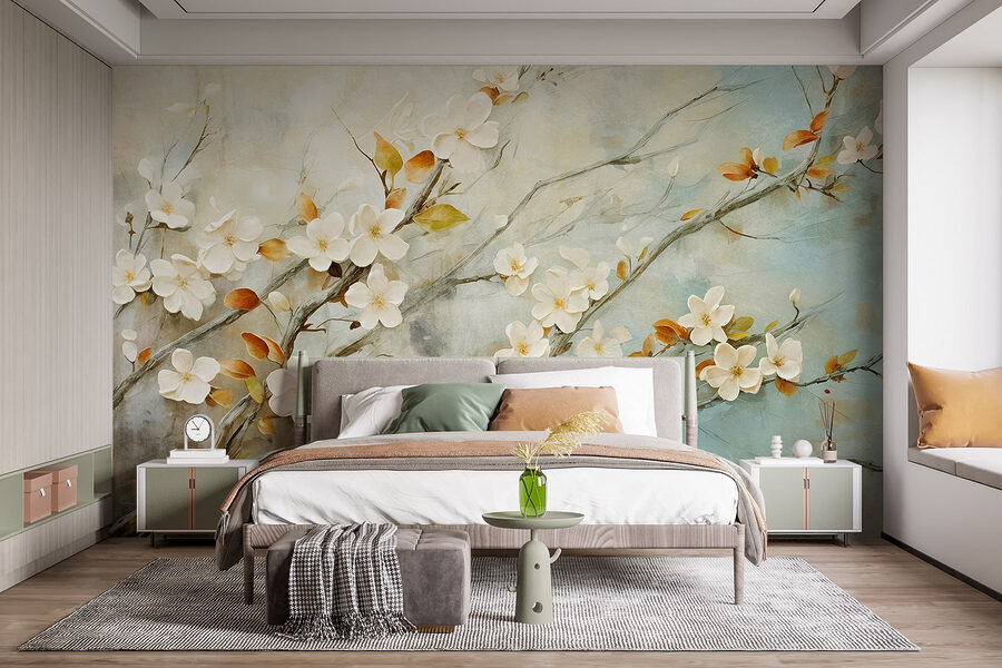 Ilumine qualquer parede com este deslumbrante mural, com ramos delicados adornados com flores brancas que parecem dançar sobre a superfície. É como trazer um tranquilo jardim japonês para a sua casa, sem a necessidade de luvas de jardinagem. Imagine entrar numa divisão e ser recebido por estas flores – é uma lembrança de que a beleza está em todo o lado, mesmo dentro de casa. As cores suaves e as formas delicadas criam uma vibração serena, perfeita para manhãs aconchegantes com café ou para aqueles momentos em que só quer uma pequena fuga. Além disso, é mais elegante do que uma planta em vaso e não terá de se preocupar em esquecer-se de a regar. Abrace o encanto da natureza e deixe este mural transformar o seu espaço num oásis tranquilo. É arte de parede que é tão fácil de usar como o seu par de chinelos favorito!