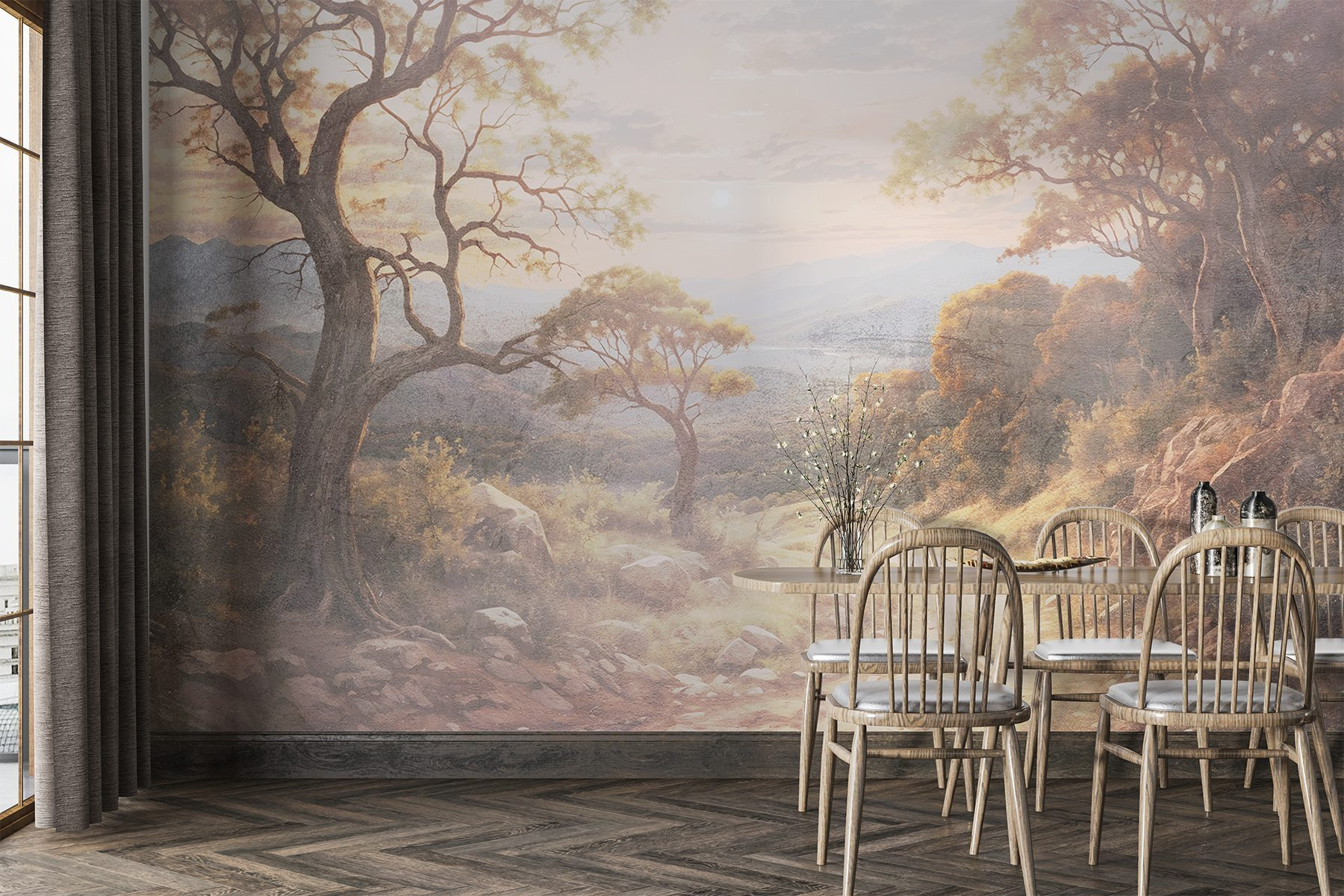 Transforme qualquer divisão numa fuga serena com este mural de parede encantador, que apresenta uma estrada de terra sinuosa ladeada por árvores majestosas e montanhas distantes. Imagine-se a entrar num refúgio tranquilo sempre que entra no seu espaço. As cores suaves e as texturas suaves atraem-no, como se o convidassem a passear por esse caminho de sonho. Perfeita para salas de estar ou recantos de leitura, sussurra calma e traz a beleza da natureza para dentro de casa. Pense só: os amigos podem começar a perguntar-lhe se se mudou para o campo! Refresque as suas paredes e deixe as vibrações relaxantes fluírem; este mural tem a magia da natureza para partilhar.