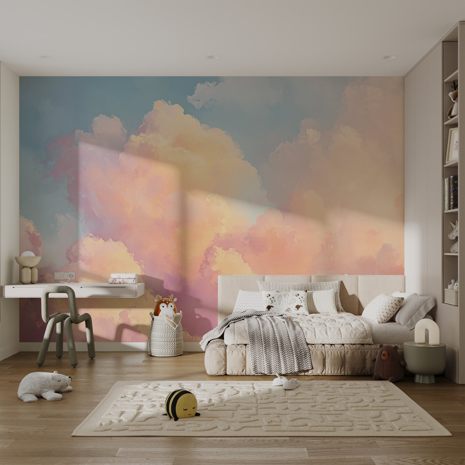 Transforme qualquer divisão numa fuga de sonho com este mural “Nuvens Coloridas no Céu”. É como ter um pedaço do paraíso mesmo na parede! Imagine acordar com nuvens suaves em tons pastel que sussurram relaxamento em vez do seu despertador. Este design deslumbrante acrescenta um toque de serenidade, perfeito para um recanto de leitura acolhedor ou para um quarto de criança vibrante. Combine-o com uma cadeira confortável e uma chávena de chá, e terá a sua própria nuvem nove. Cada olhar é um lembrete suave para flutuar pela vida um pouco mais leve. Porque não deixar que as suas paredes contem uma história de calma e criatividade?