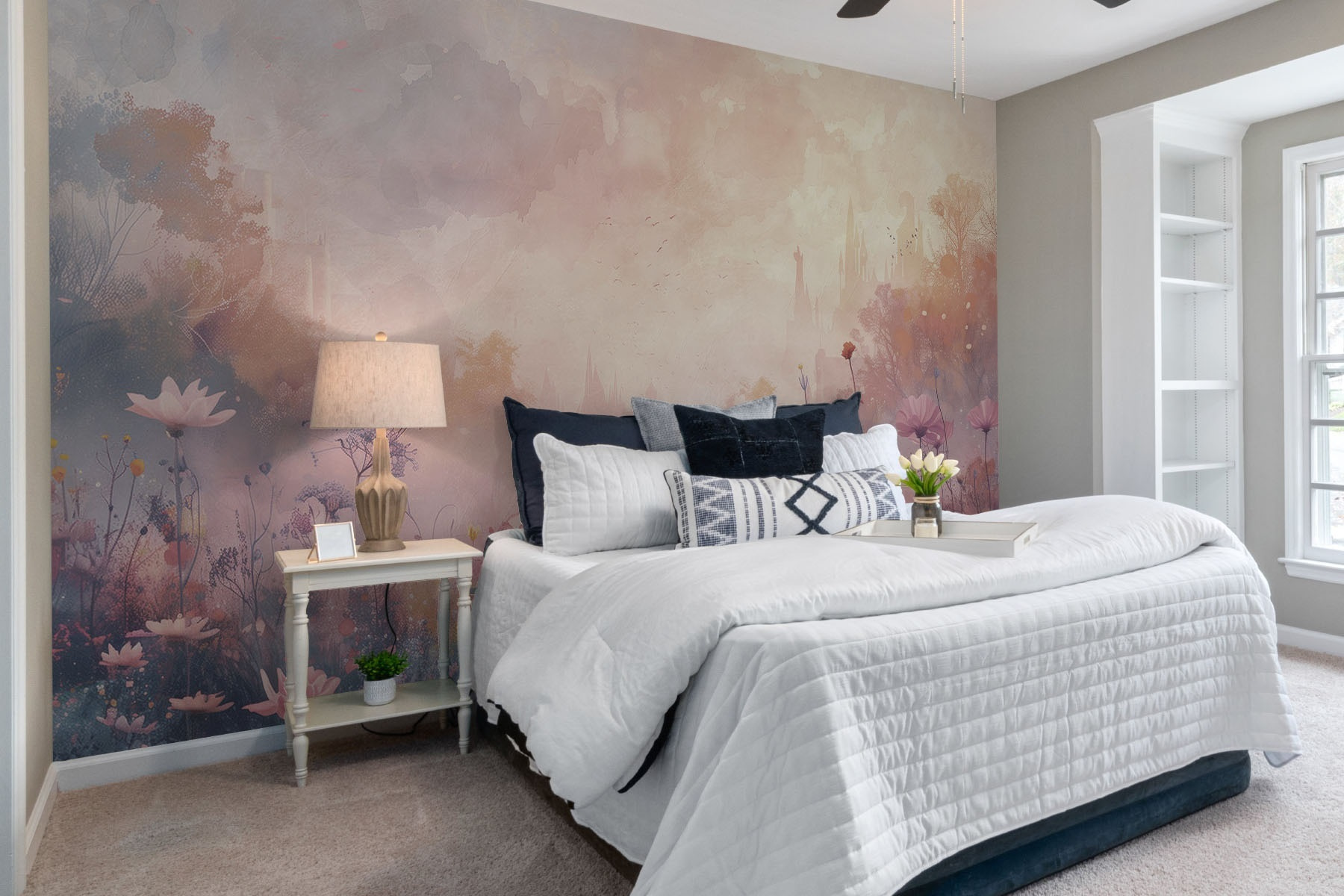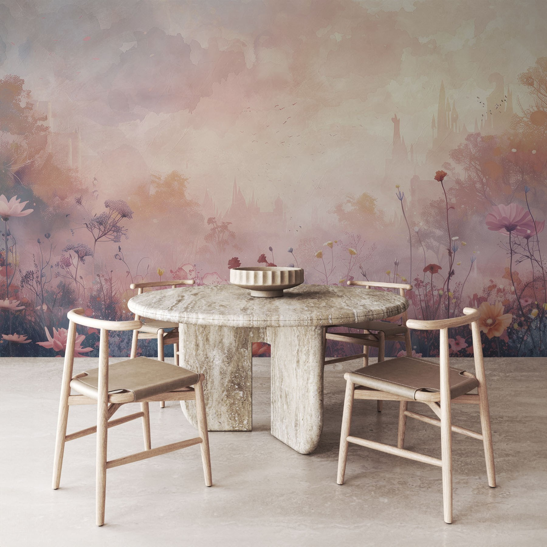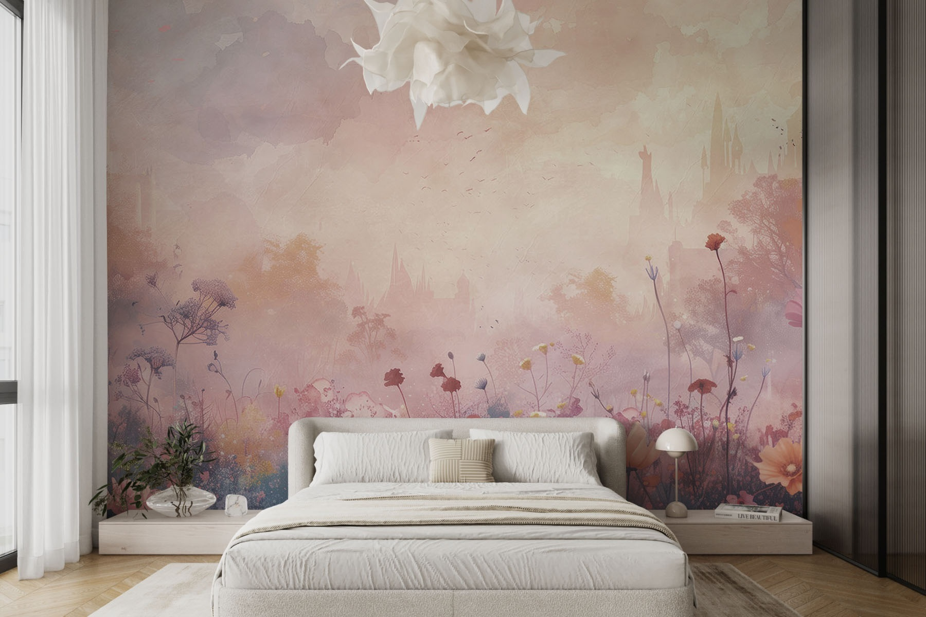 Transforme o seu espaço com este mural de sonho que apresenta um campo de flores a desabrochar, tendo como pano de fundo um castelo extravagante. Imagine entrar num jardim sereno onde cada pétala conta uma história e os tons suaves sussurram tranquilidade. É como trazer uma fatia da natureza para dentro de casa – sem a necessidade de um polegar verde. Perfeito para um recanto acolhedor ou uma sala de jogos animada, este mural convida a sonhar acordada e a conversas casuais sobre os contos de fadas favoritos. Imagine só: aconchegado com um bom livro, rodeado por flores vibrantes e uma pitada de aventura à espera para lá das muralhas do castelo.
