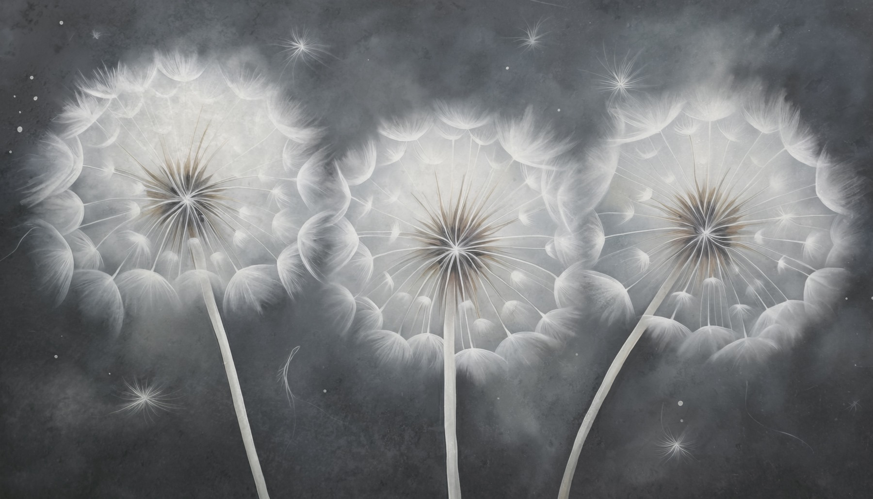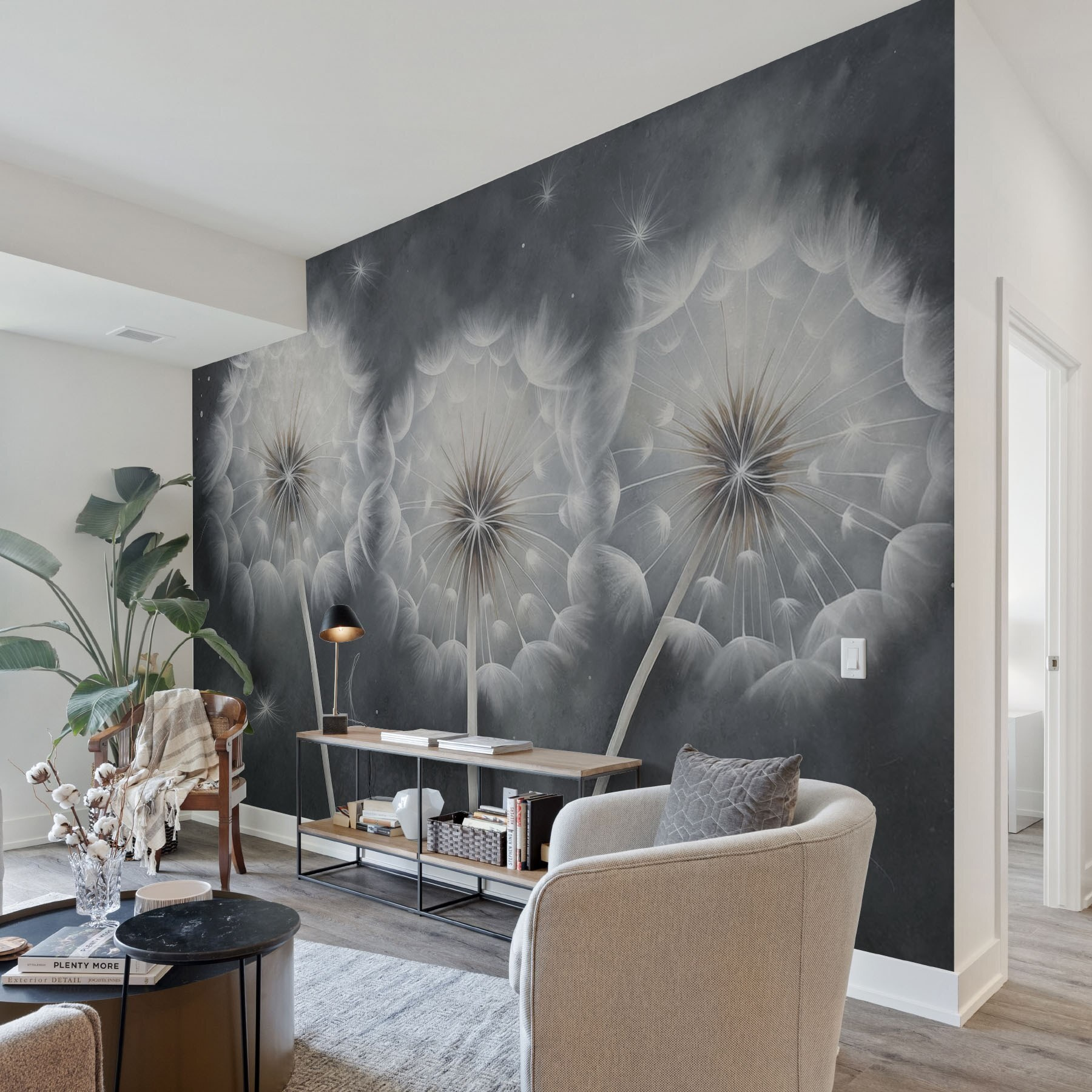 Transforme qualquer divisão num espaço de sonho com este mural cativante que apresenta um grupo de dentes-de-leão no escuro. É como uma pequena fatia da natureza envolta em suaves vibrações de aguarela. Imagine entrar no seu quarto e sentir uma sensação de calma, como se estivesse a olhar para um jardim à meia-noite onde os desejos flutuam livremente. Os detalhes delicados atraem-no, sussurrando histórias de dias ensolarados e brisas suaves. Perfeito para aqueles cantos acolhedores ou para um espaço de trabalho inspirador, o encanto subtil deste mural faz com que cada olhar pareça uma lufada de ar fresco. Quem é que não gostaria de ter esse tipo de calor na sua vida?