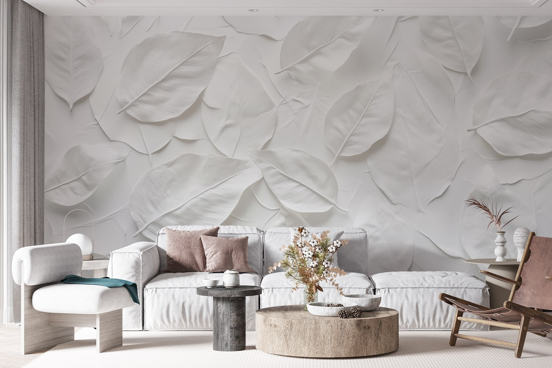 Transforme o seu espaço com este deslumbrante mural de parede com um belo arranjo de folhas brancas. É como trazer um toque de natureza para o interior sem o incómodo de regar as plantas. Imagine-se a beber o seu café da manhã neste cenário sereno, onde a simplicidade encontra a elegância. Este design acrescenta uma vibração fresca, perfeita para quem deseja um retiro calmo mesmo em casa. Quer se trate de uma sala de estar acolhedora ou de um quarto tranquilo, este mural apenas sussurra: “Relaxe”. Quem não gostaria de se sentir um pouco mais zen todos os dias? É discreto, mas extraordinariamente encantador – tal como a própria natureza.