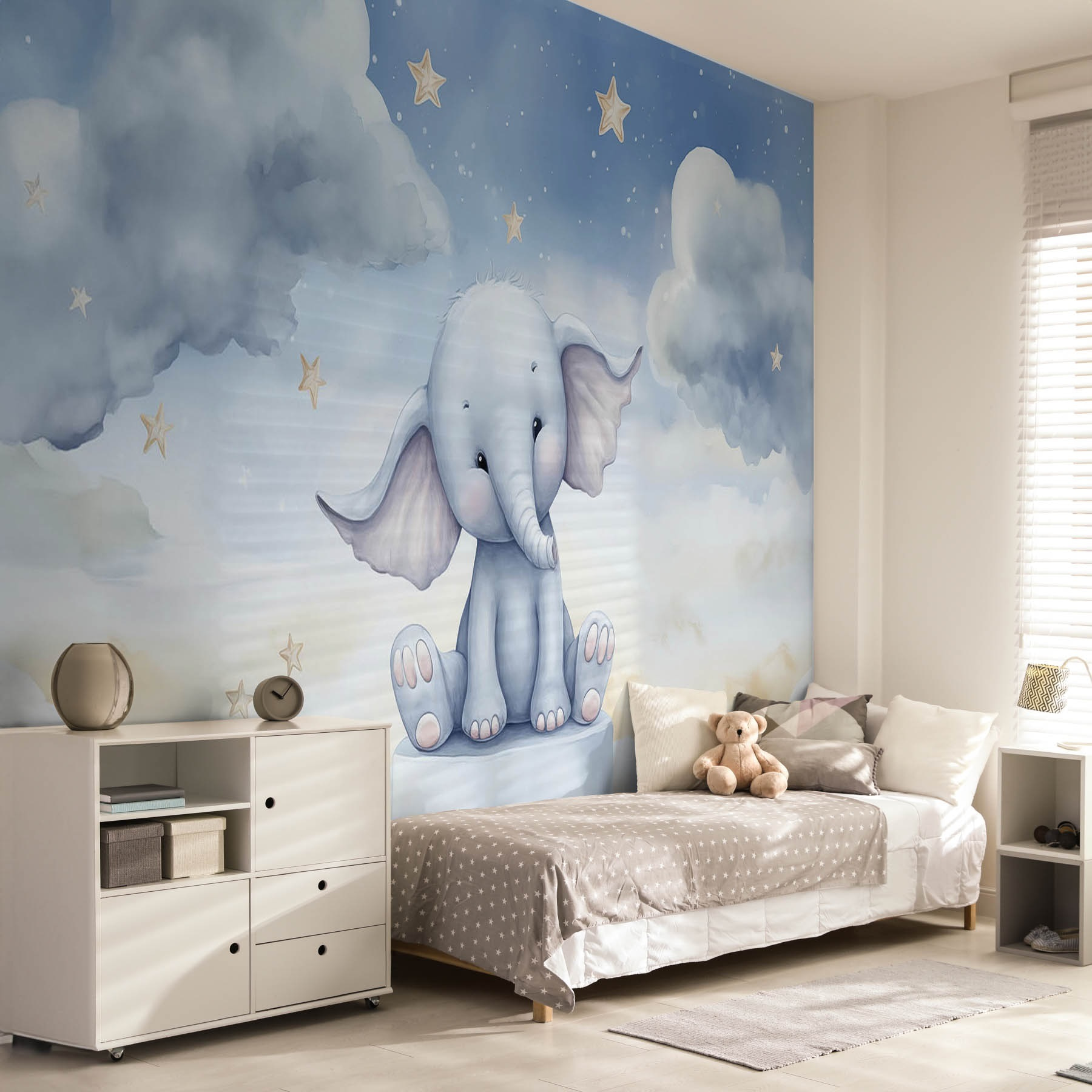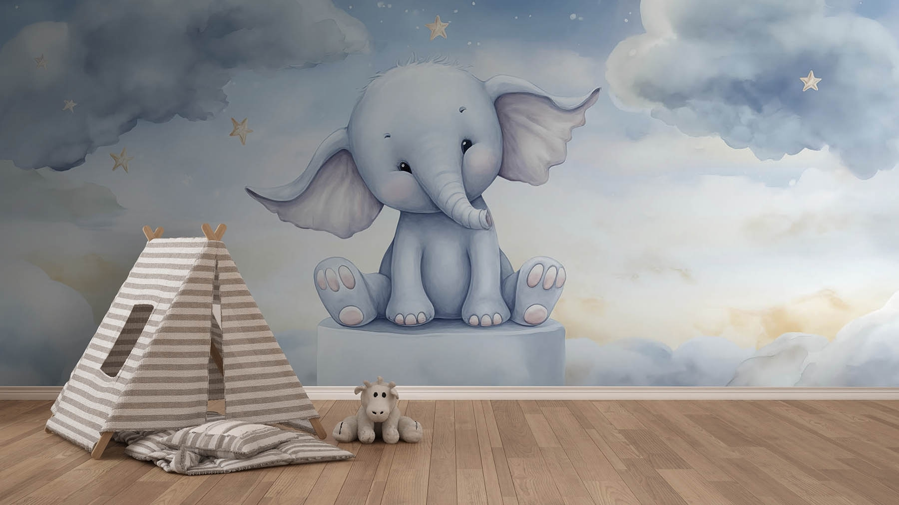 Adicione uma pitada de capricho às suas paredes com este mural encantador de um elefante empoleirado numa nuvem fofa! Imagine entrar numa sala onde esta adorável criatura brilha com charme, rodeada por nuvens suaves e sonhadoras e estrelas cintilantes. É como um abraço aconchegante nas suas paredes – quem não sentiria uma pitada de alegria? Perfeito para um quarto de criança ou um recanto divertido, este mural pode inspirar doces histórias de aventura e maravilha. Tem aquela vibração de bem-estar que torna cada olhar um pouco mais brilhante, evocando sonhos de terras distantes. Um verdadeiro início de conversa!