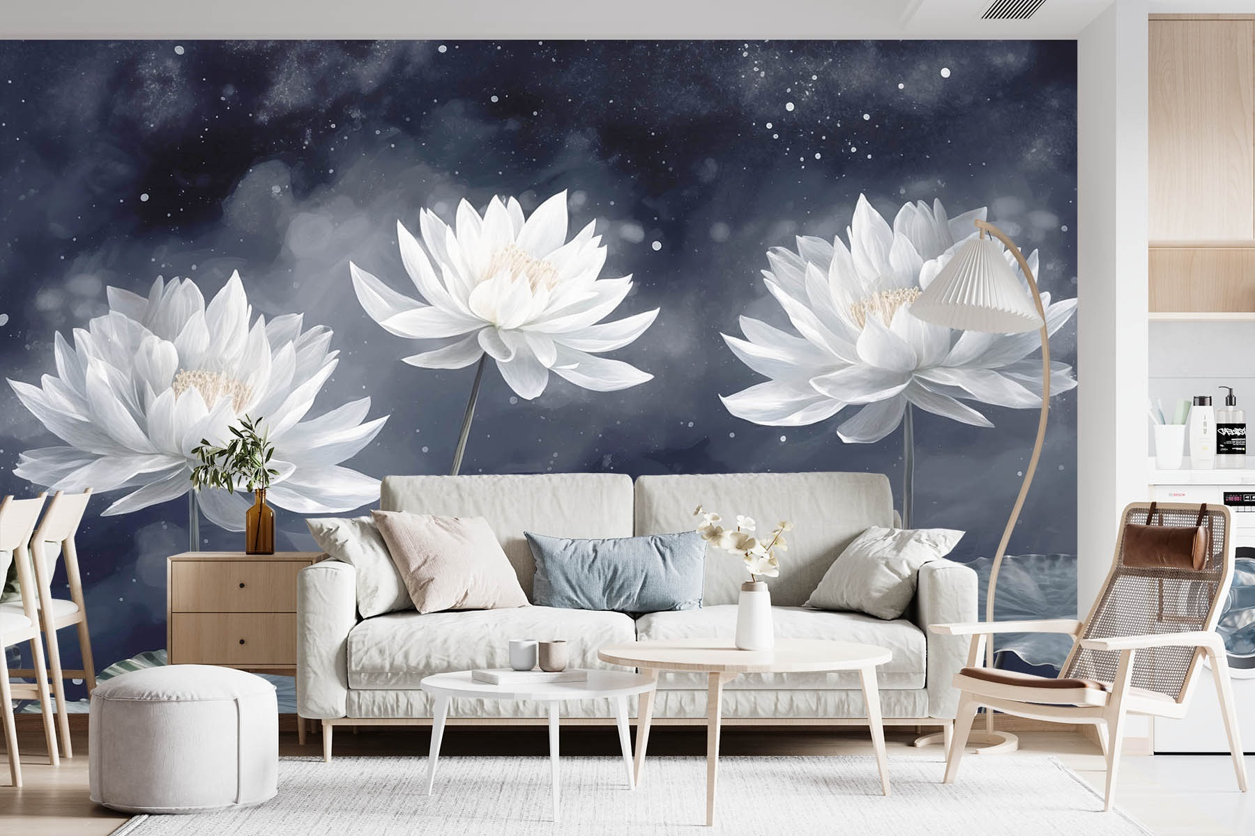 Transforme qualquer divisão num oásis sereno com este belo mural de flores brancas que flutuam suavemente entre folhas verdes exuberantes. É como convidar a natureza diretamente para a sua casa. Imagine-se a entrar no seu espaço e sentir uma onda de calma a invadi-lo, como se tivesse acabado de passear por um jardim tranquilo. O efeito de aguarela acrescenta um toque artístico, tornando-o num ponto focal que é simultaneamente calmante e marcante. Perfeito para aqueles momentos em que precisa de escapar ao caos da vida quotidiana – é como umas mini-férias na sua parede. Quem diria que o relaxamento poderia ter um aspeto tão bom?