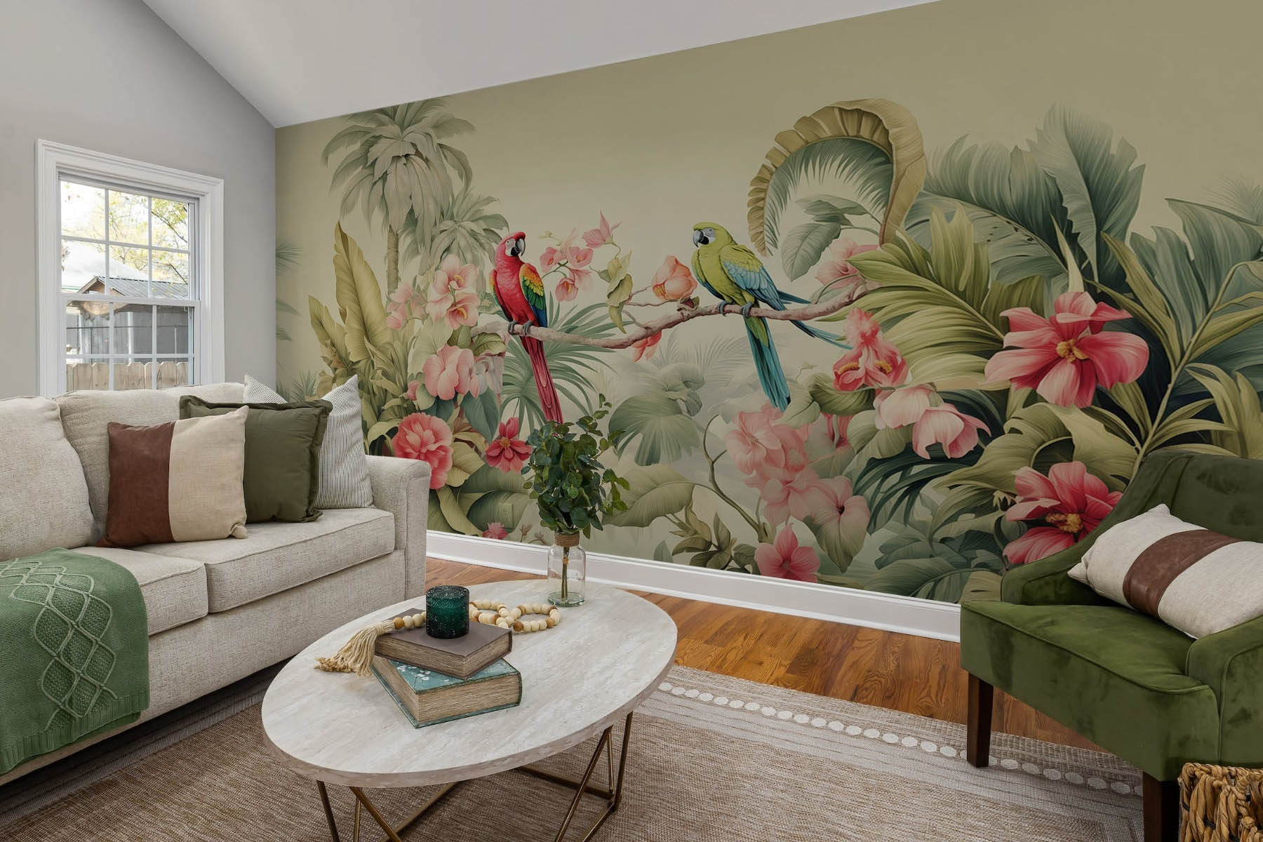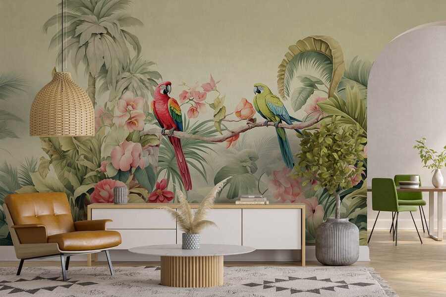 Transforme o seu espaço com este mural de parede vibrante que apresenta um encantador casal de papagaios empoleirados graciosamente num ramo. Estes amigos emplumados trazem um toque de paraíso tropical diretamente para a sua casa. As flores e folhas exuberantes criam uma atmosfera serena, tornando-o perfeito para um recanto de leitura acolhedor ou uma sala de estar animada. Imagine-se a bebericar o seu café da manhã rodeado por esta explosão de cor – é como estar numas férias eternas! Além disso, as vibrações brincalhonas dos papagaios podem até inspirar algumas conversas atrevidas. Abrace a beleza da natureza e deixe as suas paredes contarem uma história!