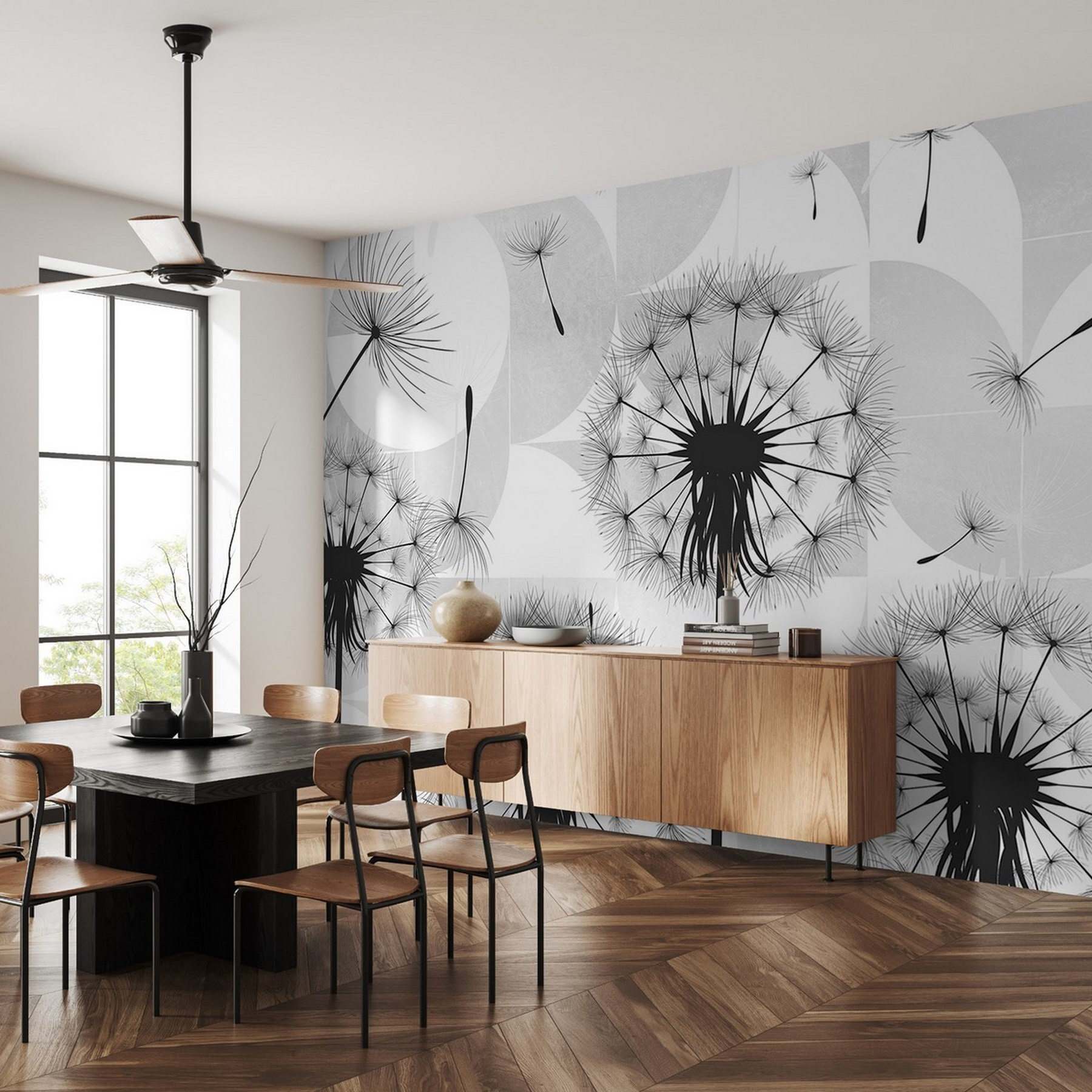 Transforme uma parede aborrecida numa fuga de sonho com este deslumbrante mural de sementes de dente-de-leão pretas a dançar no ar. É como trazer um pouco da natureza para dentro de casa! Imagine bebericar o seu café da manhã enquanto estas delicadas sementes flutuam por cima, despertando pensamentos de desejos e dias de sol. Este mural não é apenas uma peça de decoração; conta uma história, convidando a uma sensação de calma e capricho no seu espaço. O contraste elegante de preto e branco cria uma vibração moderna, tornando-o perfeito para qualquer divisão. Quem sabe? Talvez inspire alguns devaneios!